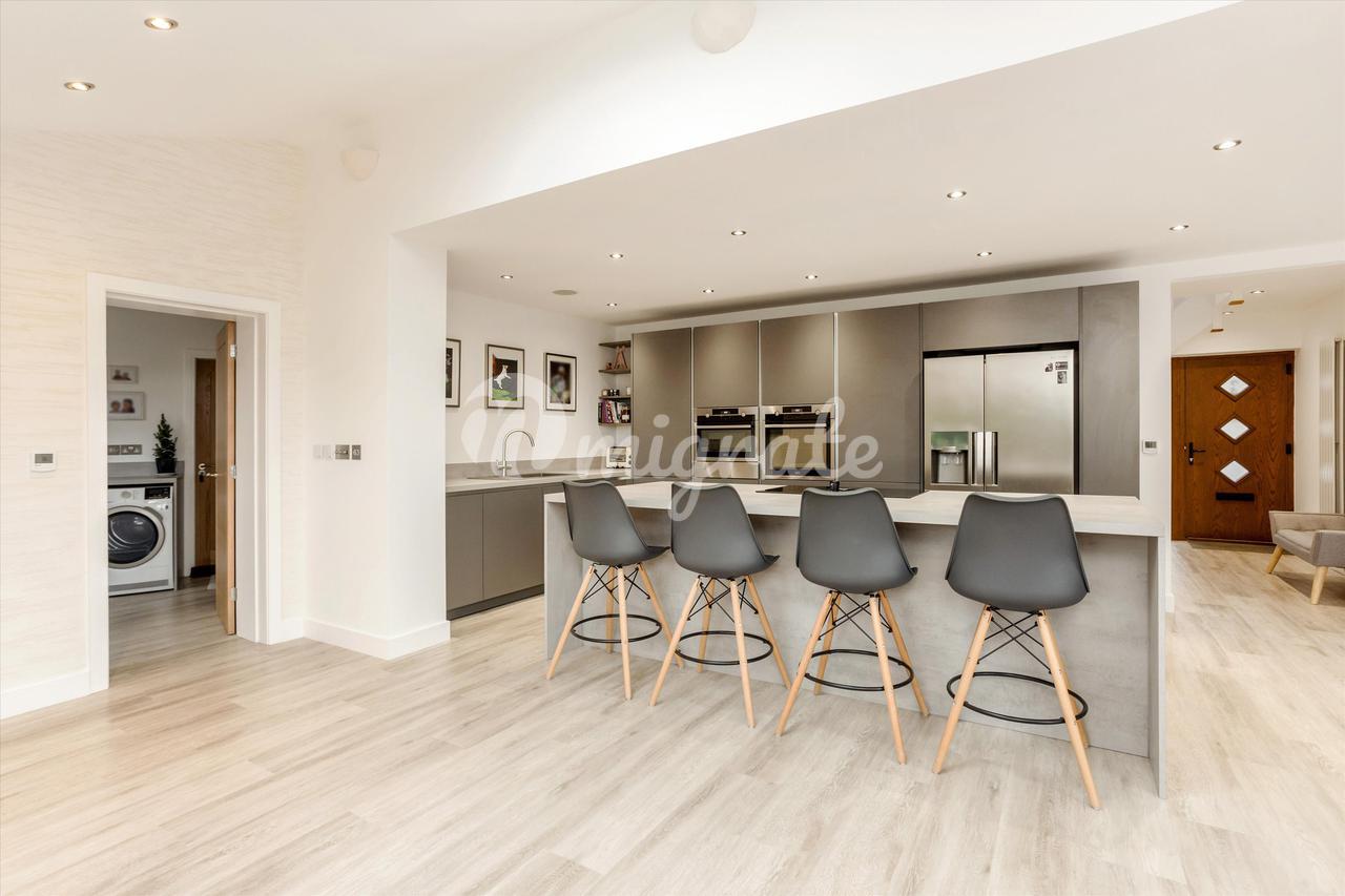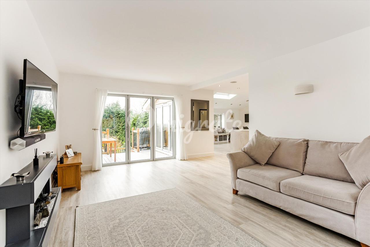 Преимущественно открытая планировка на первом этаже, ориентированная на юго-запад, означает, что основное жилое помещение, естественно, очень светлое, а в сочетании с современной отделкой и стилем в этом доме приятно жить. Двустворчатые двери из гостиной и основного обеденного зала ведут на приподнятую террасу, поэтому, когда оба набора дверей открыты, помещение течет внутрь и наружу.