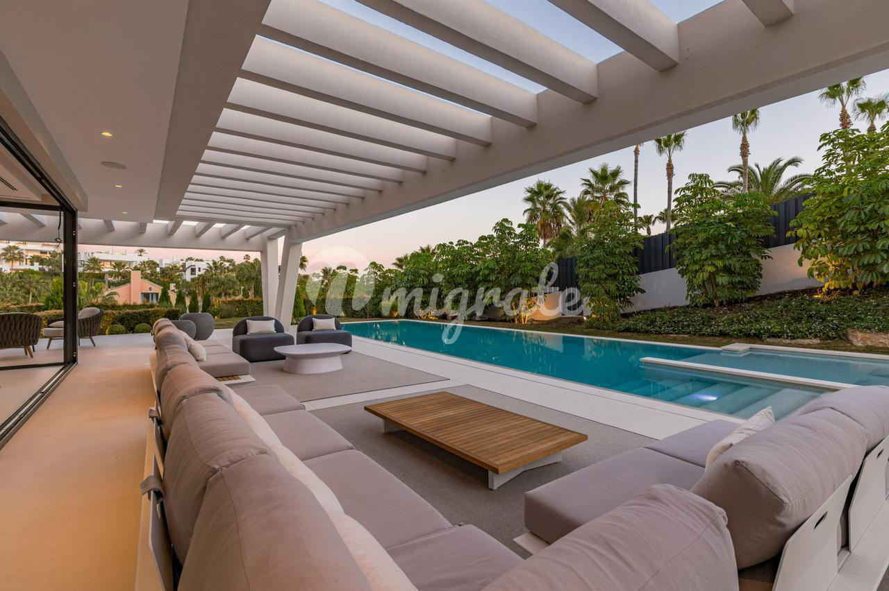 Эта выдающаяся вилла расположена в одном из сообществ Новой Андалусии, примерно в 700 м от клубного дома Лос-Наранхос и в 5 км от Пуэрто-Бануса с широким спектром услуг различного рода, таких как бары, банки, фитнес-центры, парикмахерские, аптеки и другие. Также Пуэрто Банус – это место для роскошных яхт и автомобилей, модных бутиков и изысканных ресторанов.