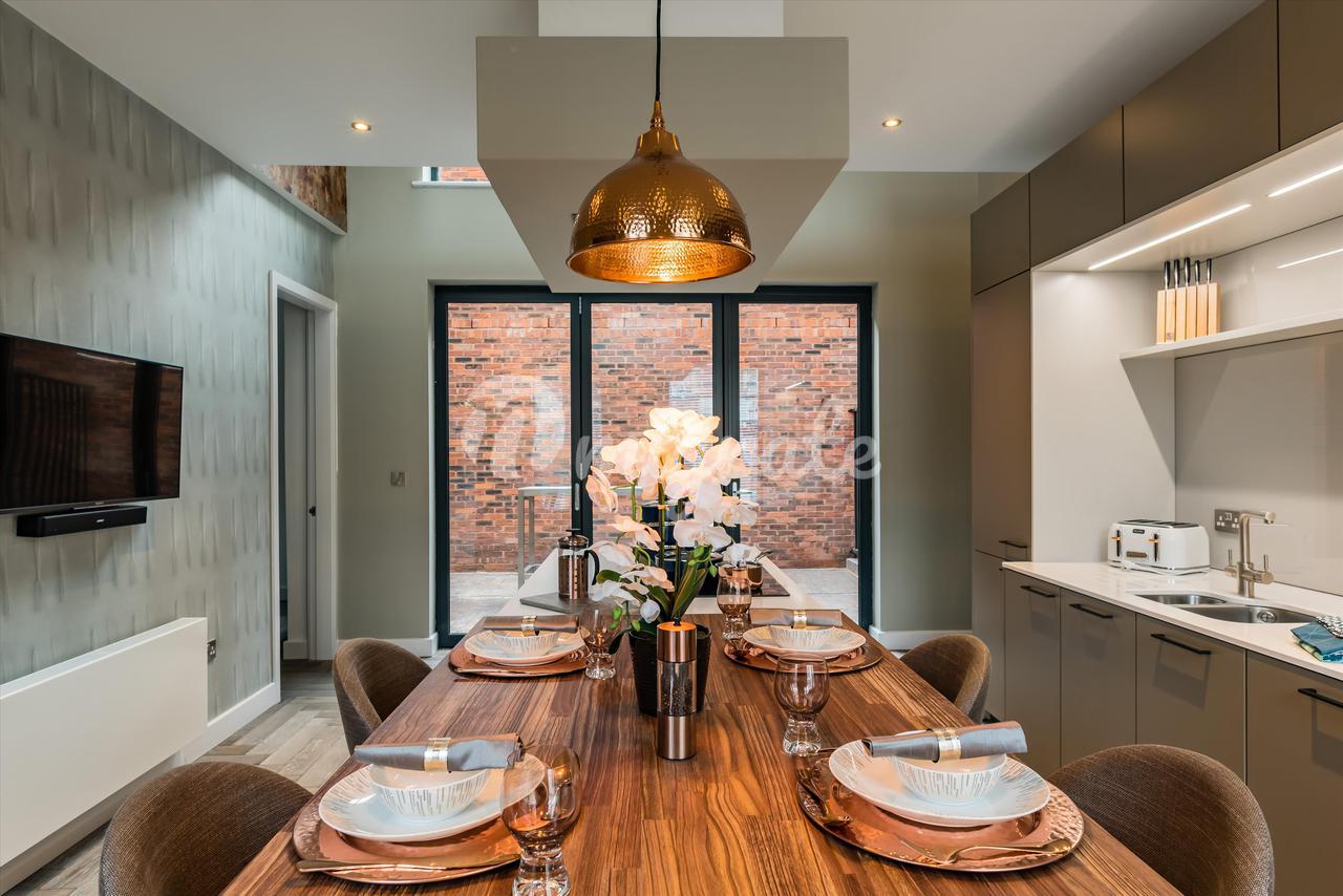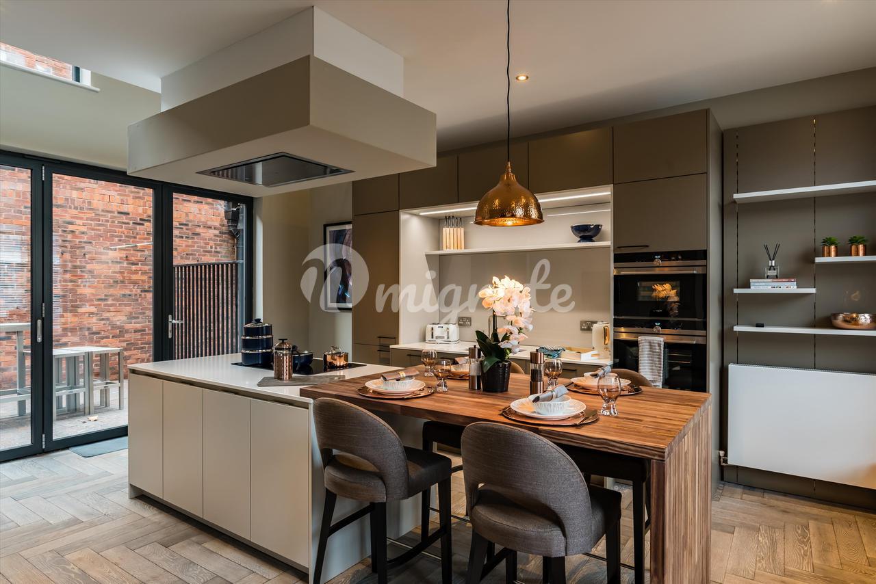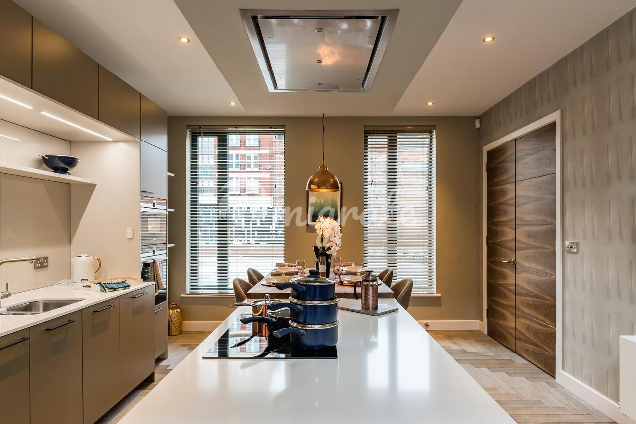• Центральное газовое отопление обеспечивается с помощью системного котла со стальными панельными радиаторами • Выключатели и розетки из матовой нержавеющей стали с USB-разъемом на кухне и в спальнях для удобной зарядки устройств • Современные кухни с различными встроенными напольными и настенными блоками в комплекте с современными столешницами из ламината с квадратными краями. Высококачественная бытовая техника, включая электрическую плиту, варочную панель и вытяжку, встроенный холодильник / морозильник, встроенную посудомоечную машину и встроенную стиральную машину / сушилку во всех таунхаусах • Сантехника Duravit и латунная посуда Hansgrohe, горячая вода под давлением из сети, ванны в главной семейной ванной комнате с поддоном для душа и ширмой в ванной комнате • Современные двери повсюду, включая скобяные изделия из матовой нержавеющей стали, противопожарные двери, где это применимо • Встроенные светодиодные светильники с низким энергопотреблением на кухне и в ванных комнатах, светодиодные светильники под шкафом на кухне, подвески в гостиной и прихожей • Тепловые детекторы и дымовая сигнализация • Блок асфальтированного парковочного места, мощеный задний дворик • Карандашный круглый плинтус и архитрав отделаны белой яичной скорлупой. • Белая эмульсионная краска для всех оштукатуренных стен и потолков • Плитка Porcelanosa для полов в ванных комнатах и частично облицованных плиткой стен во влажных помещениях • Ковры в спальнях и LVT повсюду, кроме влажных помещений • Вход с клавиатуры в общий вход с доступом по аудиодомофону из квартир • Видеонаблюдение за входами и автостоянкой • Цифровая антенна и распределение сигнала Freeview на телевизионную точку в гостиной и спальне • Входящий высокоскоростной кабель Virgin /BT с несколькими точками передачи данных