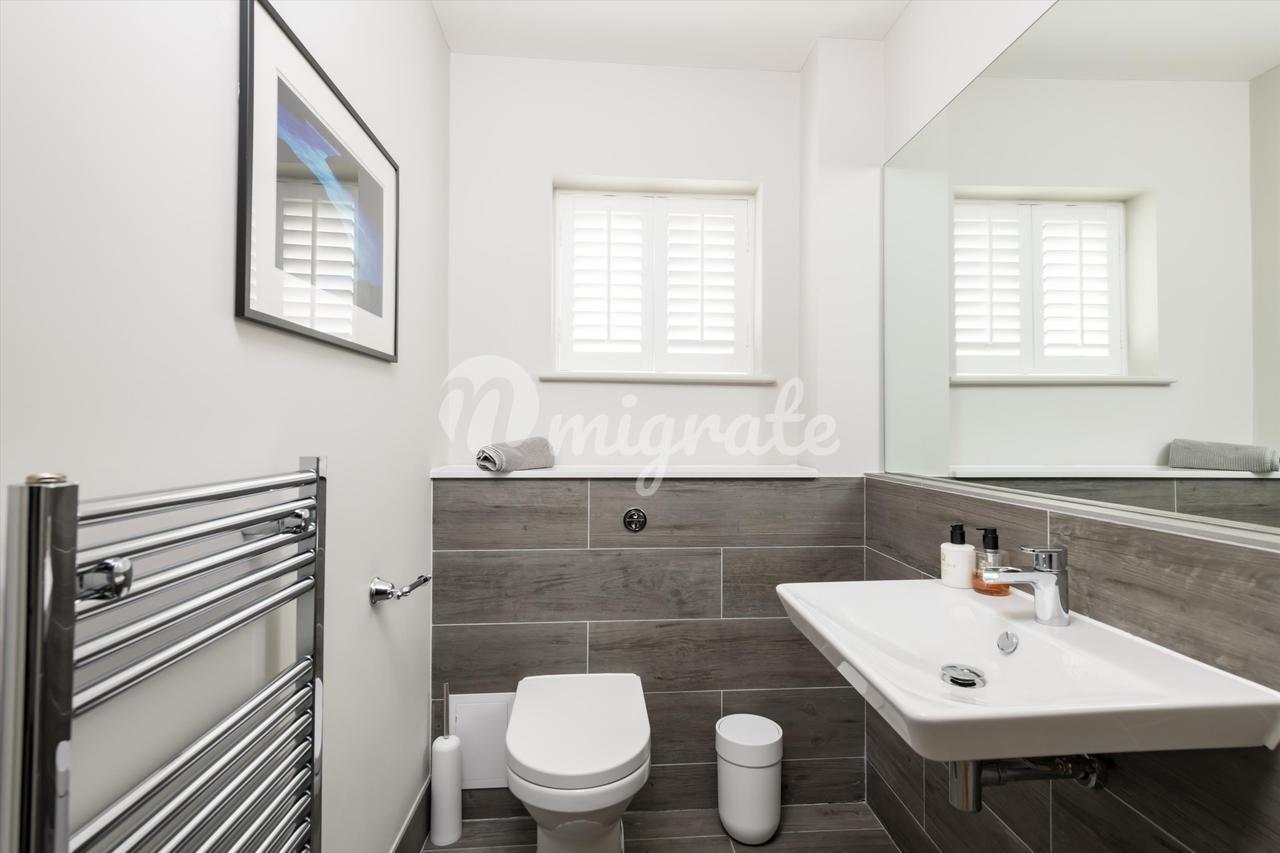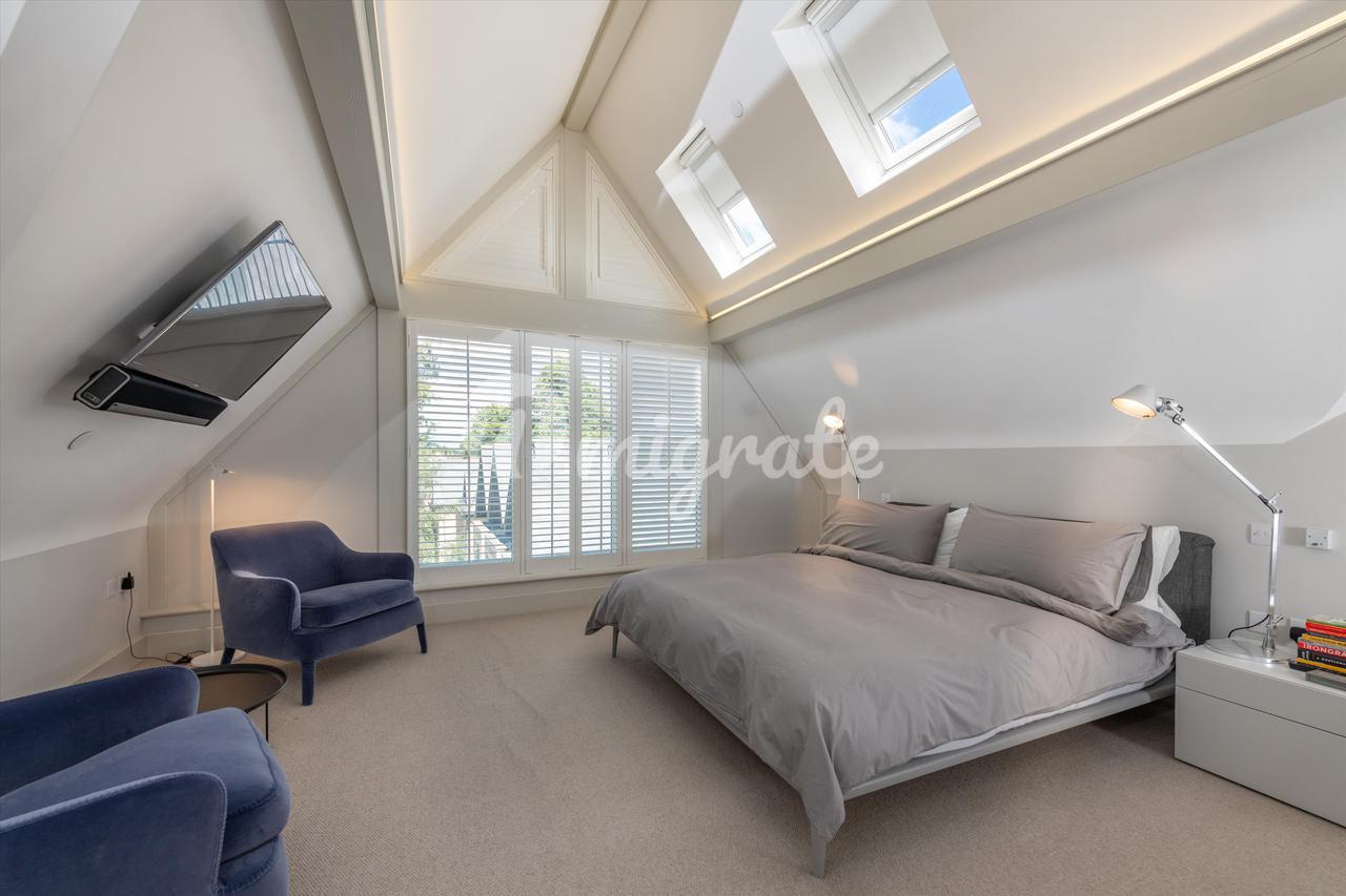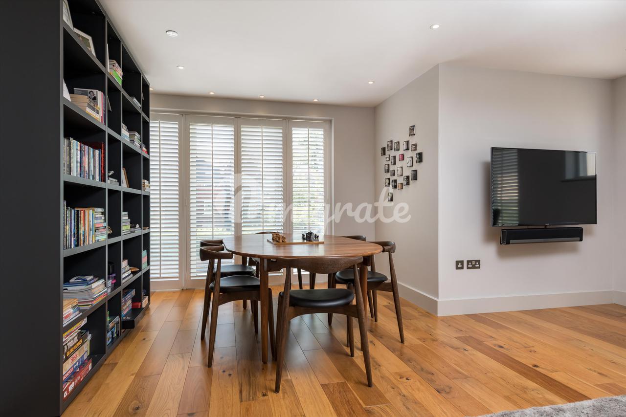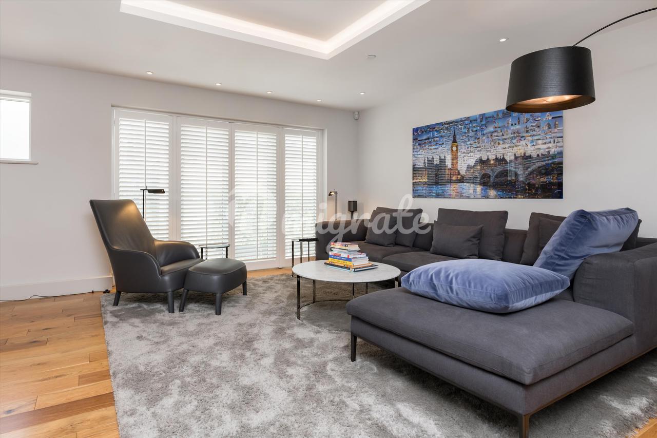 С размещением на четырех этажах, включающих 2668 квадратных футов, это солидный дом с парковкой во дворе на две машины, а также охраняемой парковкой в заднем саду. Это самая большая собственность в этом избранном комплексе Sweetcroft Homes. Внутри дом имеет превосходное естественное освещение, а спецификация включает в себя пол с подогревом, твердые бетонные полы, звуковую систему Sonos, обширную аудио-, видео- и информационную инфраструктуру от Smartnest. Договоренность включает пять спален с ванными комнатами с двуспальными кроватями с мужской спальней, занимающей весь верхний этаж. На первом этаже есть холл, большая кухня / зал для завтрака, подсобное помещение, семейная комната и гардероб. На первом этаже есть большая гостиная, кабинет и спальня с ванной комнатой с душем. Второй этаж с тремя спальнями с ванными комнатами и прачечной, а также верхний этаж с главной спальней с гардеробной. Перед домом есть небольшой сад, а сзади - обнесенный стеной сад, в основном положенный на лужайку с мощеной террасой.