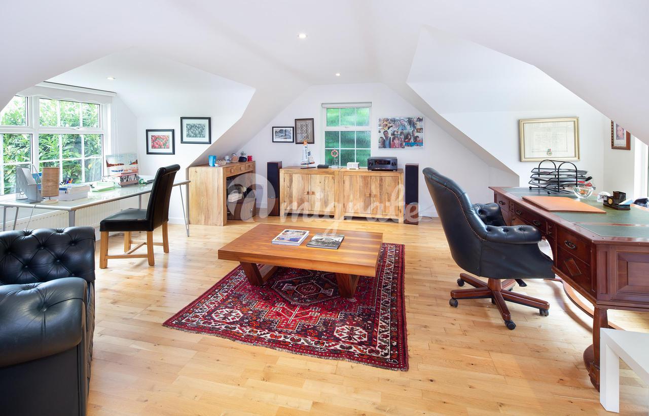 Лежащий на этой частной дороге с отличным доступом к центру города, это очень хороший семейный дом с жилой площадью около 3700 квадратных футов на трех этажах. На первом этаже есть большая прихожая с лестницей, поднимающейся с четырьмя комнатами приема, гардеробной и большой кухней / комнатой для завтрака в задней части с подсобным помещением в стороне. На первом этаже есть большая посадочная площадка с главной спальней с большой ванной комнатой, а также есть еще три спальни, все с ванными комнатами и душевыми. На верхнем этаже есть две спальни с душевой комнатой. В тройном гараже есть электрические подъемные двери и отличный офис площадью 450 кв. Футов на первом этаже с отдельным входом. Перед домом и гаражом есть много места для парковки. Сад находится позади дома и заложен газоном со взрослыми деревьями и кустарниками. В саду есть очень умный садовый офис / студия.