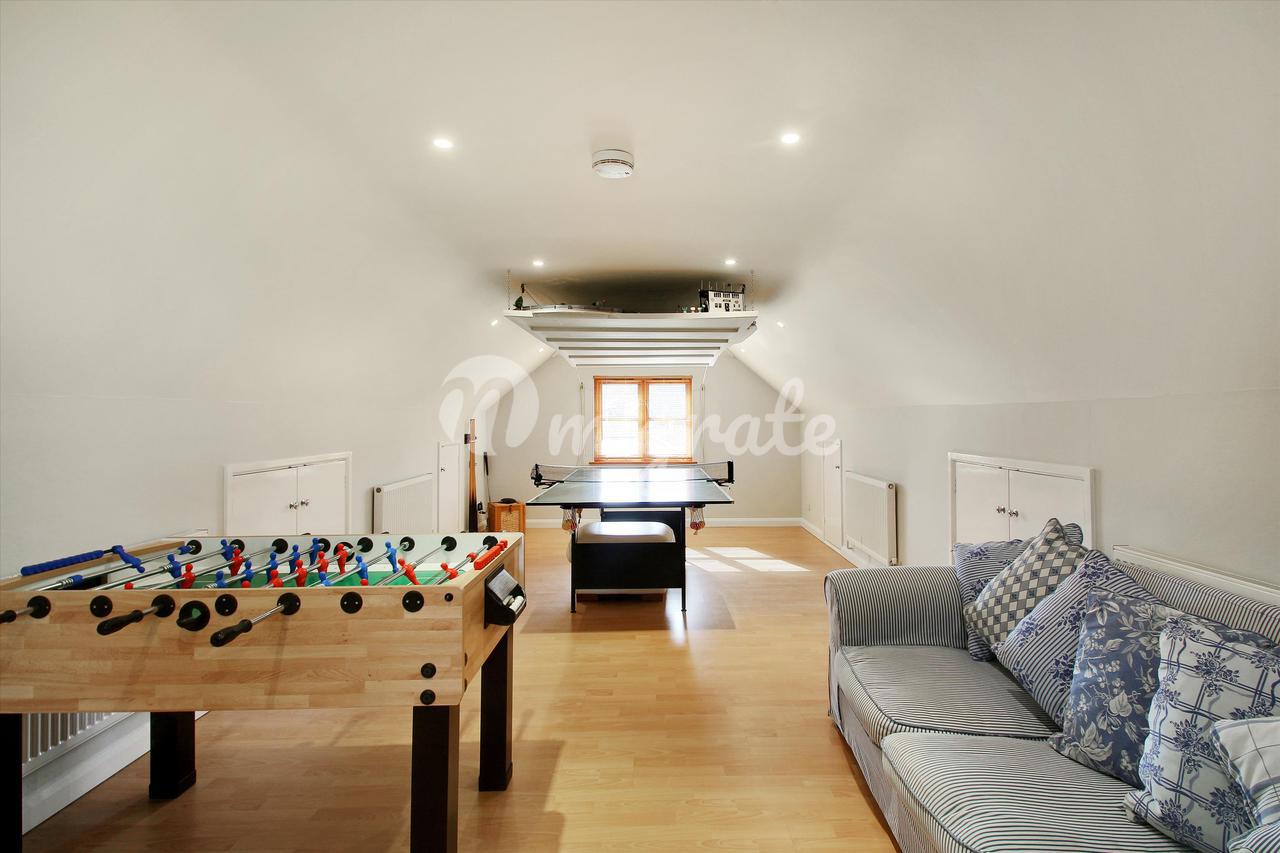 Внешне собственность выигрывает от наличия большого кабинета, идеально подходящего для работы из дома, доступ к которому осуществляется из сада. На подъездной дорожке достаточно места для парковки нескольких автомобилей, а также гараж на две машины, в котором есть гардеробная внизу и игровая комната наверху, которую можно легко превратить в автономную жилую единицу.