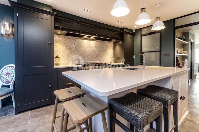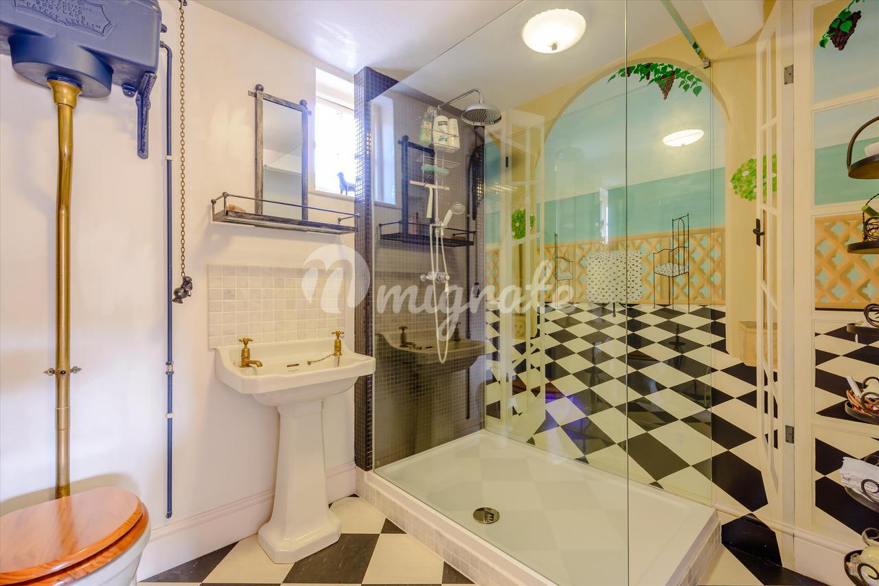 Договоренность первого этажа включает большую гостиную с камином особенности и дровяной печью, аккуратной с диапазоном, консерваторией с французскими дверями в сад и застекленным сводчатым потолком, задней прихожей/кладовой, раздевалкой и садовой комнатой с французскими дверями. Кухня / столовая примыкает к зимнему саду и имеет ряд деревянных стен и базовых единиц, двойную раковину Belfast, плиту и место для обеденного стола хорошего размера. Есть небольшая торговая точка, в которую можно попасть из заднего холла с кладовой наверху.