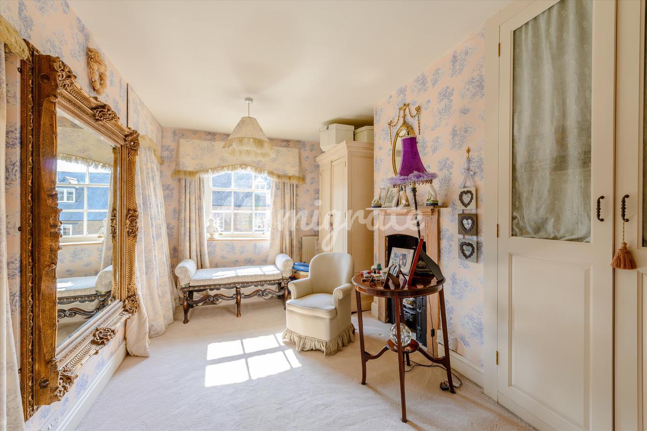 Лестница поднимается из гостиной на площадку второго этажа, где достаточно места для письменного стола. На первом этаже расположены главная спальня с балконом Джульетты, большая гардеробная и ванная комната, еще 3 спальни с двуспальными кроватями, 2 дополнительные семейные ванные комнаты и прачечная. .