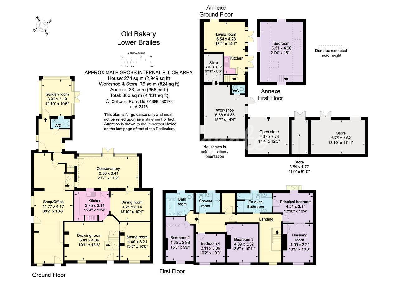 Дополнительные постройки в настоящее время спроектированы так, чтобы предложить открытый магазин с двумя отсеками, три кладовые, мастерскую и автономную пристройку с кухней / гостиной открытого плана на первом этаже и спальней на втором этаже. Существует возможность, при условии получения разрешений на планировку, использования этих хозяйственных построек и торгового помещения для других целей. Существует также привлекательная лужайка в саду с множеством взрослых деревьев, видом на сельскую местность и травянистыми бордюрами.