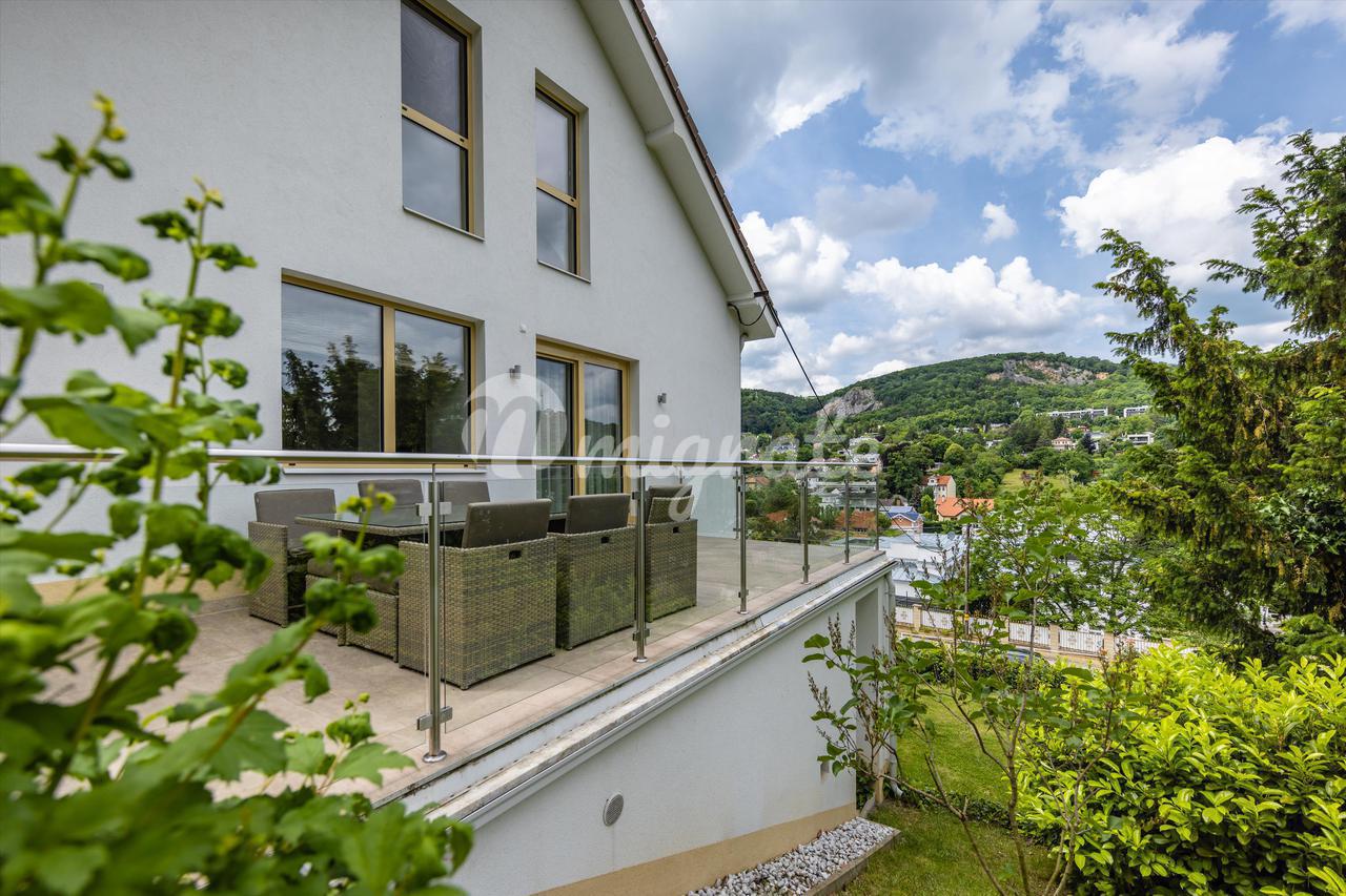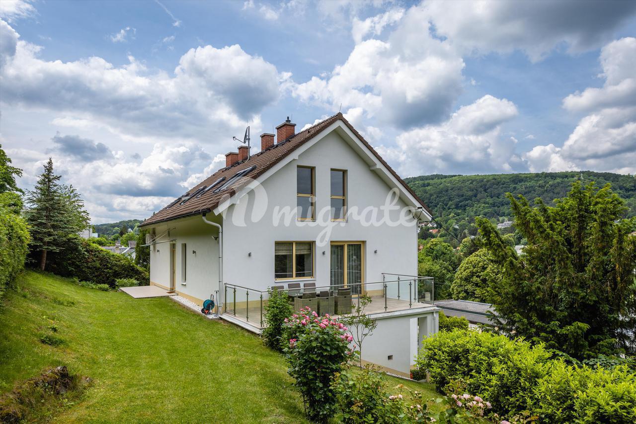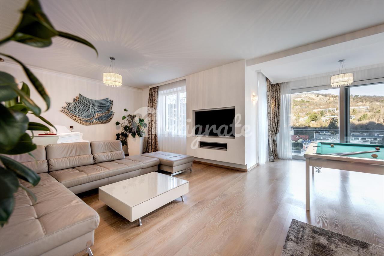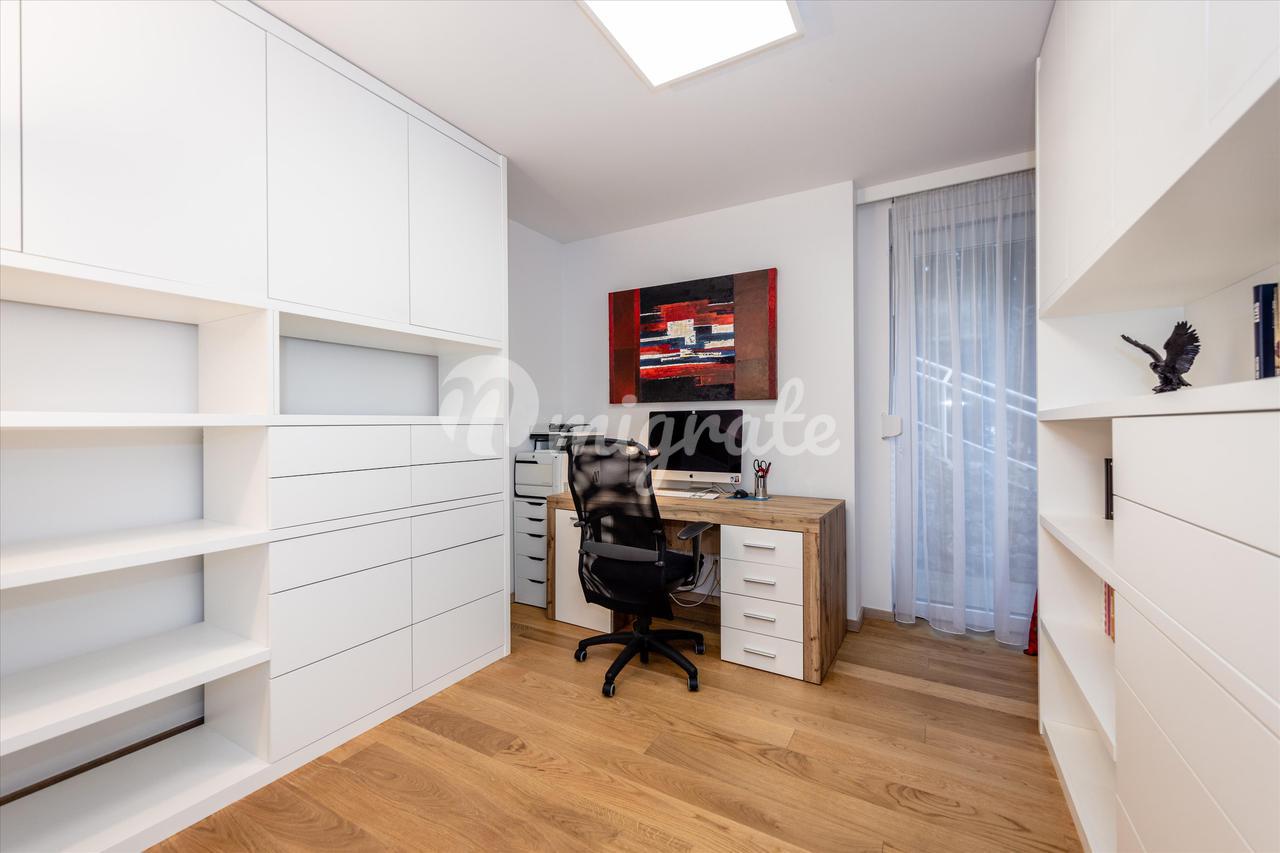 Из-за расположения на склоне холма входная зона находится на мезонине (ок. 93,58 кв.м). Из прихожей вы попадаете в светлую гостиную с красивым эркером, столовую и примыкающую к ней открытую кухню. Терраса площадью ок. 24,5 кв.м., куда можно попасть из обеденной зоны, идеально подходят для наслаждения утренним солнцем. На этом этаже также есть кабинет и гостевой туалет. На первом этаже (около 106,59 кв.м.) находится главная спальня с эркером и прекрасным видом, гардеробная, просторная ванная комната с душевой кабиной, ванной, двойной раковиной и туалетом, еще один кабинет, кладовые, подсобное помещение и второй вход.