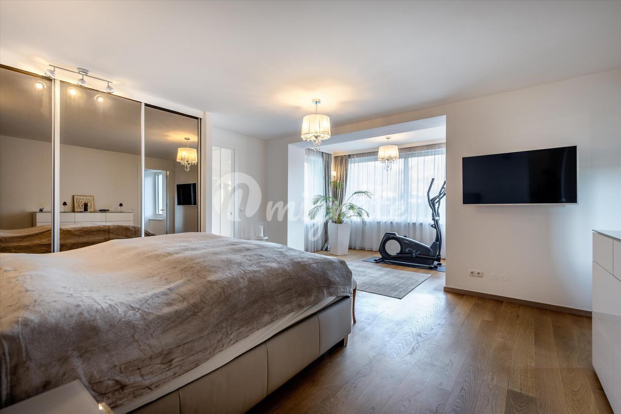 На верхнем этаже (около 115,60 кв.м.) находятся еще две спальни, а также комната для гостей, ванная комната с двойной раковиной, паровым душем, ванной и отдельным туалетом.