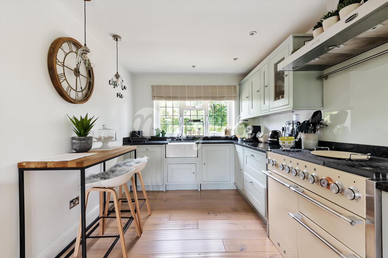 Расположенный в конце этой частной дороги, всего в нескольких минутах ходьбы от вокзала Клэндон и немного дальше от сказочного ресторана Onslow Arms, дом гордо возвышается над закрытой подъездной дорожкой, чтобы создать сцену для этого тщательно оформленного дома.