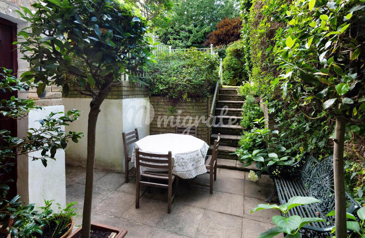 Внешне дом расположен в стороне от дороги за невысокой кирпичной стеной с двойными воротами из кованого железа и пешеходными воротами со ступеньками, ведущими к входной двери. В задней части дома находится ухоженный сад, выходящий на западную сторону, который в основном разбит на газоны и предлагает высокую степень уединения. Существует полностью изолированная беседка с подключением электричества и света, а также полезный садовый сарай.