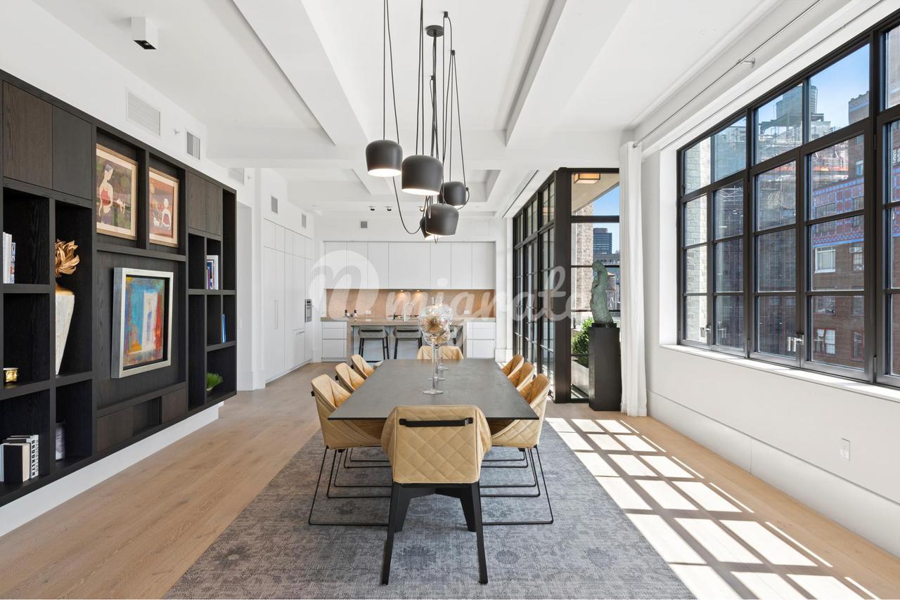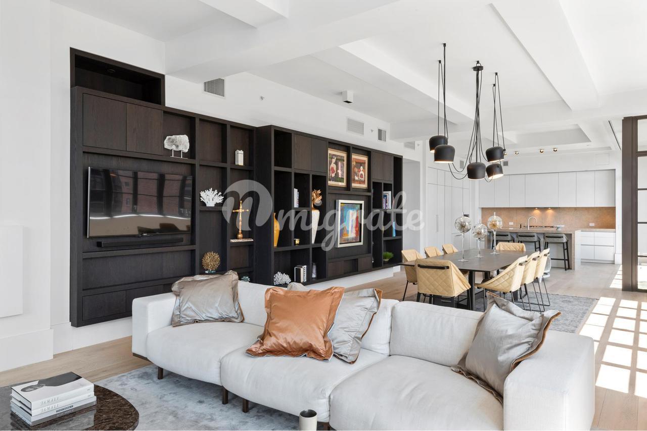 Добро пожаловать на PH15A в кондоминиум Huys в Номаде. Это поистине уникальное и впечатляющее предложение с тонким, утонченным и интуитивно понятным дизайном, созданное всемирно известным архитектором интерьеров Питом Буном. Этот невероятный дом в стиле лофт излучает роскошь во всем. Этот пентхаус площадью 2983 кв.футов с тремя спальнями и тремя с половиной ванными комнатами предлагает впечатляющие потолки 11 1/2 фута, южную и восточную экспозиции и обширный вид на Парк-авеню Саут. Спроектированный таким образом, чтобы наполнить каждую комнату необыкновенным естественным светом, этот особняк располагает увеличенными створчатыми окнами от пола до потолка и двумя открытыми пространствами. Эта резиденция отличается открытой планировкой, светлой палитрой натурального камня Шамболь, полами из матовых дубовых досок шириной 8 дюймов, потолками с оригинальными балками, фирменными деталями столярной обработки по всему периметру и камином. Детали интерьера включают обшитые панелями межкомнатные двери с утопленным корпусом и скрытыми петлями, изготовленную на заказ дверную фурнитуру из нержавеющей стали Formani и солнечные жалюзи с электронным управлением и потайными карманами для штор на окнах. Современная кухня оснащена шкафчиками Bulthaup Alpine White, изысканными столешницами из мрамора Chambolle толщиной 3 дюйма и задними панелями из Бельгии, сантехникой Dornbracht, бытовой техникой Miele и мойкой Franke undermount из нержавеющей стали. В главной спальне есть большая гардеробная и главная ванная комната с пятью светильниками. Детали главной ванной комнаты включают в себя полы из высокопрочных каменных плит Chambolle и настенную плитку, полы с подогревом от NuHeat и ванну Kaldewei, окруженную каменными плитами Chambolle. Дополнительные детали ванной комнаты включают изготовленную на заказ отделку туалетного столика проволочной щеткой, сантехнику Dornbracht и банные принадлежности Piet Boon от Formani. Кондоминиум Huys был создан легендарными голландскими застройщиками Kroonenberg Groep и изысканно переделан по сравнению с его первоначальным зданием 1917 года постройки. Повсеместно считается, что это одна из самых желанных разработок в Nomad. Отель удобно расположен на перекрестке улиц Номад и Флэтайрон. Удобства включают в себя круглосуточного консьержа, постоянного менеджера, холодильную камеру, помещение для хранения велосипедов, фитнес-центр, медиа-зал, детскую игровую комнату, прачечную и просторную террасу на крыше с кухней и обеденной зонами и красивой зеленью. В стоимость также входит отдельное помещение для хранения вещей.
