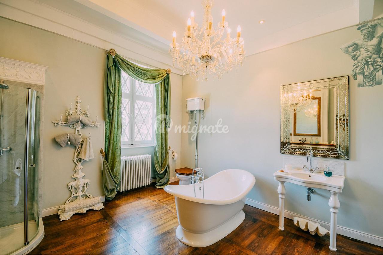 Считается, что в 13 веке это очаровательное здание было охотничьим домиком, а позже преобразовано в середине 19 века. Оно богато готическими деталями с зубцами, горгульями, херувимами и средневековыми девизами. Над многостворчатыми окнами с диагональными стеклами на крыше из шифера и свинца возвышается центральная квадратная башня, по бокам которой расположены две башенки-перечницы, в одной из которых находится потайная лестница. В главном зале есть впечатляющая двойная лестница, а декоративные элементы по всему замку включают декоративную штукатурку, мраморные камины и облицовку плиткой, резные деревянные двери, дубовые полы и панели. На первом этаже расположены кухня-столовая, бильярдная и апартаменты для гостей. На втором этаже находится музыкальная комната, салон, столовая, библиотека, а также 3 спальни и ванные комнаты. На втором этаже находится студия и еще 5 спален плюс ванная комната, с возможными дополнительными 3 ванными комнатами. Спальня 10 на третьем этаже. Снаружи - гаражи, мастерская и сарай. 15-метровый бассейн с домиком у бассейна / тренажерным залом. Земельный участок площадью 1,45 гектара, граничащий с лесом и красивым ручьем.