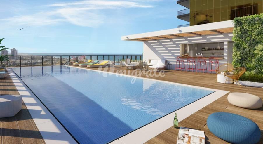 Современный элитный жилой комплекс с сервисом 5* отеля расположен на первой линии моря в Тель-Авиве, в двух минутах ходьбы до пляжа. Из апартаментов открывается панорамный вид на море.Жилой комплекс с
