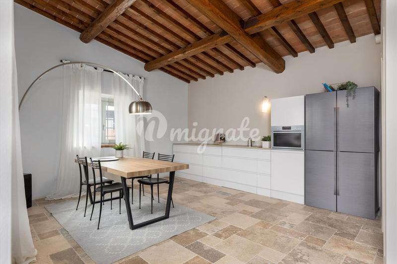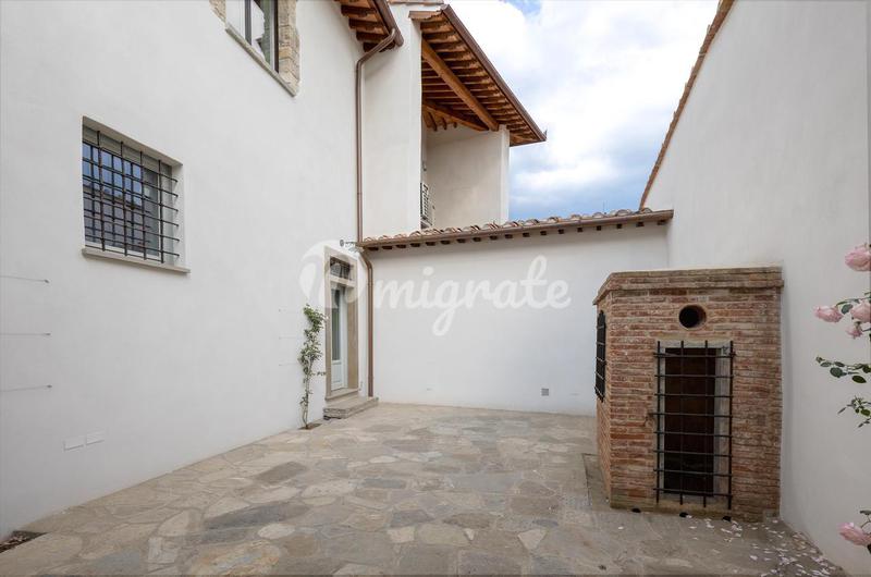 Великолепная, полностью отреставрированная квартира в стиле 15-го века на окраине Флоренции. Вход ведет прямо в гостиную, а справа находится большая лестница, ведущая на второй этаж. Из гостиной также