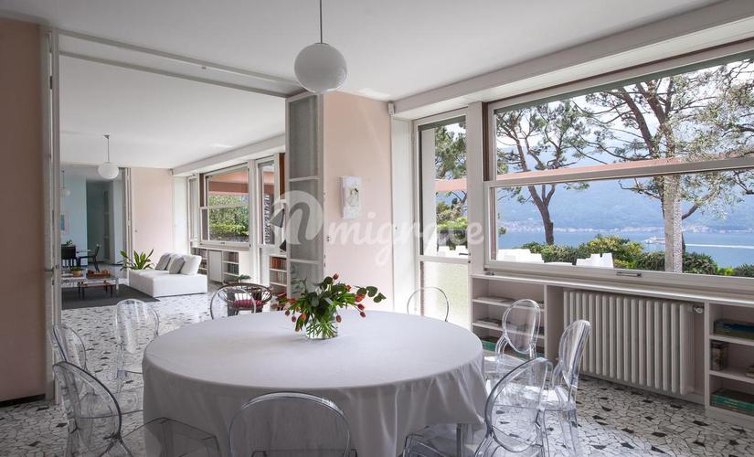 Просторная светлая вилла общей площадью около 400 кв.м. прекрасно спланирована, имеет лифт и несколько террас, с которых открывается великолепный вид на озеро и горы. Планировка виллы включает в себя: