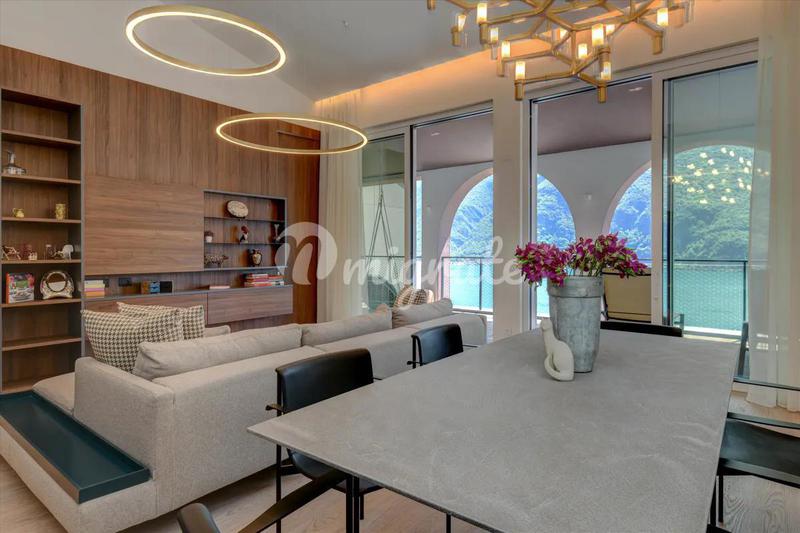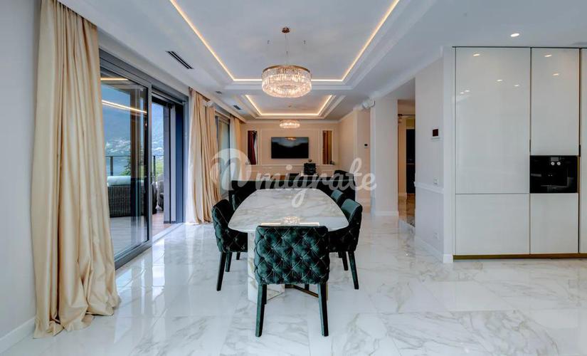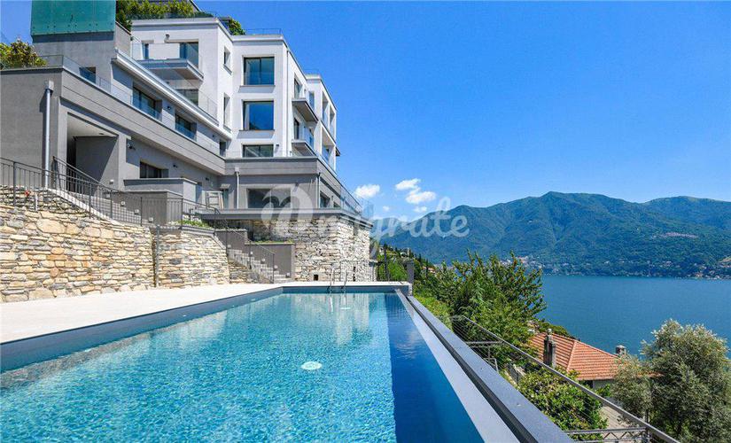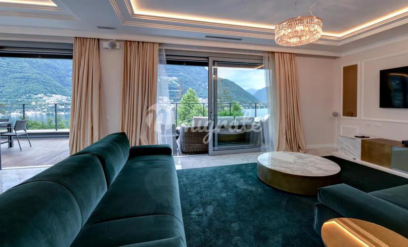 Апартаменты расположены в престижном жилом районе с панорамными видами на горы и озеро Комо. Апартаменты жилой площадью 140 кв. м включают частый сад площадью 100 кв. м и большие террасы с видом на оз