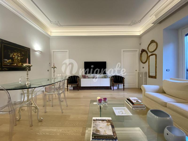 Апартаменты площадью 130 кв. м расположены на Corso Indipendenza в Милане. Апартаменты включают гостиную с кухней и обеденной зоной, 3 спальни, 2 ванные комнаты и просторную гардеробную. Апартаменты т