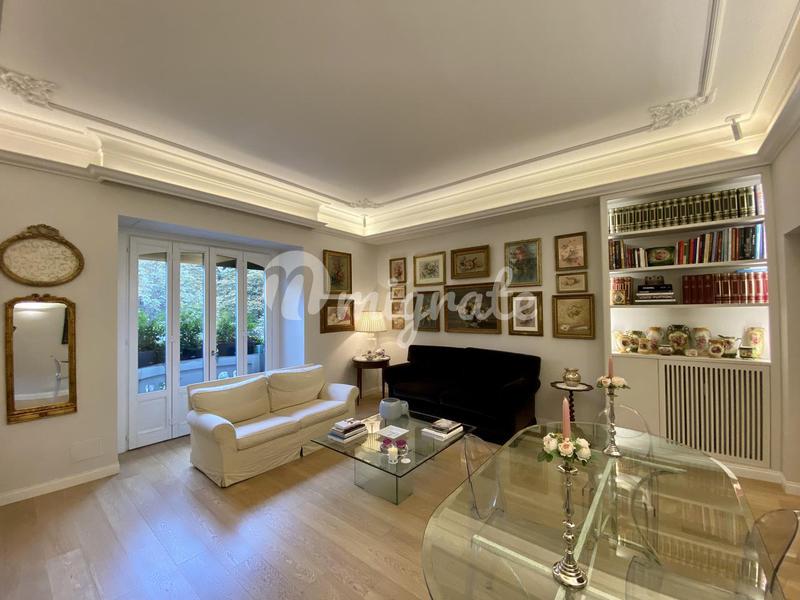 Квартира расположена на первом этаже с услугами консьержа в течение всего дня и двойным лифтом. Она состоит из большой и светлой гостиной с ТВ-зоной, столовой и небольшого балкона с видом на зелень ул