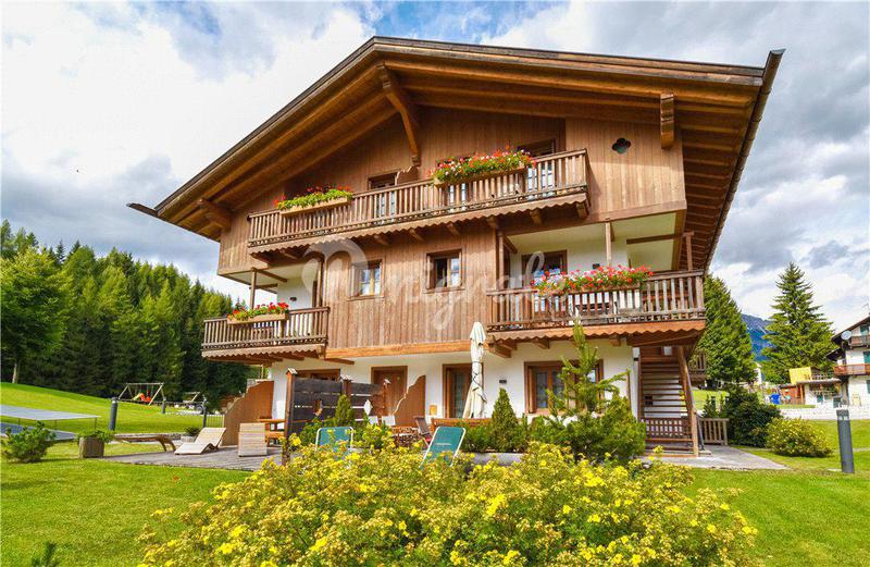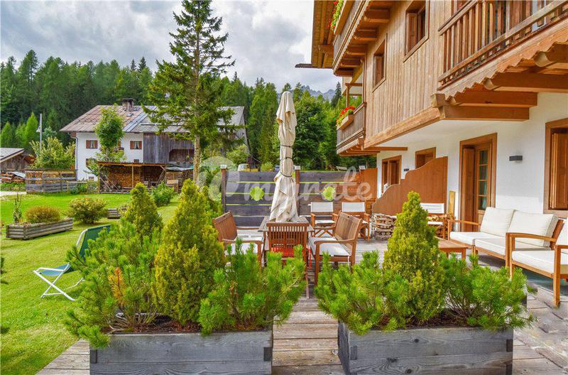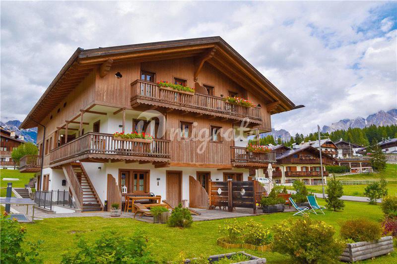 Шале расположено в Итальянских Альпах – в городке Кортина-д’Ампеццо. Шале состоит из двух этажей площадью 94 и 71 кв. м, террасы площадью 80 кв. м, зоны барбекю, гостиной, столовой, кухни, 3 спален, 3