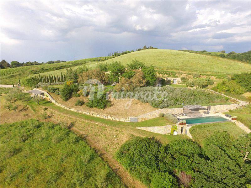 Виноградник. Вилла общей площадью 314 м² открывает захватывающие панорамные виды на Кьянти, Сиену и гору Амиата. Вилла разделена на три здания. Главный двухэтажный дом площадью около 179 м² включает в