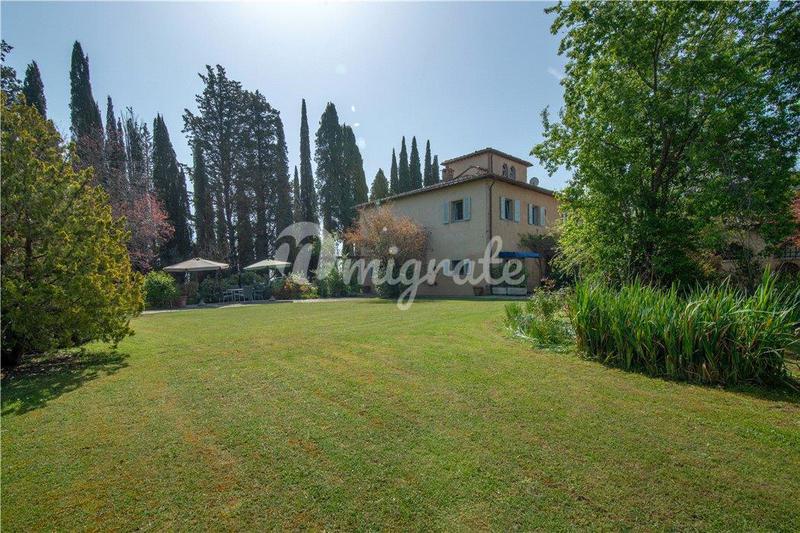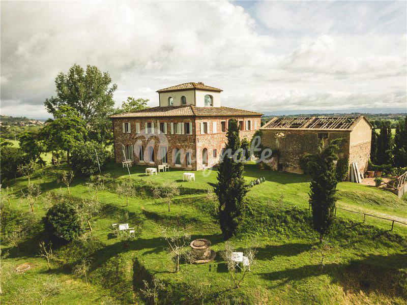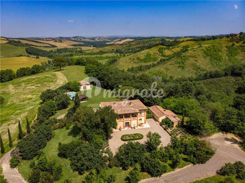 Усадьба расположена в прекрасном живописном месте в пригороде г. Сиена, региона Тоскана. Основной дом состоит из 2 этажей. Первый этаж включает прихожую, кабинет, гостиную открытого плана, кухню, клад
