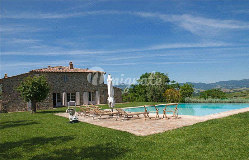 Вилла расположена в Тоскане в коммуне Сан-Кашано-дей-Баньи в привилегированном месте, с которого открываются панорамные виды на ландшафты долины Валь-д’Орча, объекта Всемирного наследия ЮНЕСКО. Дом бы