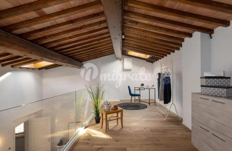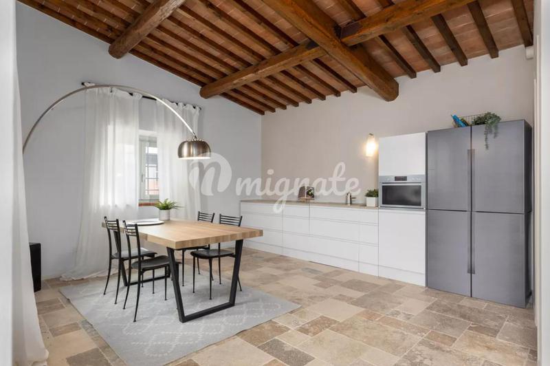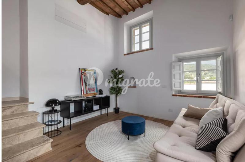 Великолепная, полностью отреставрированная квартира в стиле 15-го века на окраине Флоренции. Вход ведет прямо в гостиную, а справа находится большая лестница, ведущая на второй этаж. Из гостиной также