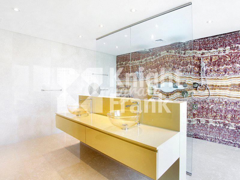 Изящная 3-этажная вилла включает гостевую спальню, две кухни, столовую, фитнес-зал и гостиную. Панорамные окна и двери наполняют виллу естественным светом и открывают потрясающий вид на море. На втором этаже расположена просторная гостиная. На территории есть инфинити – бассейн. Интерьер дома выполнен в светлых песочных тонах.
