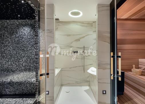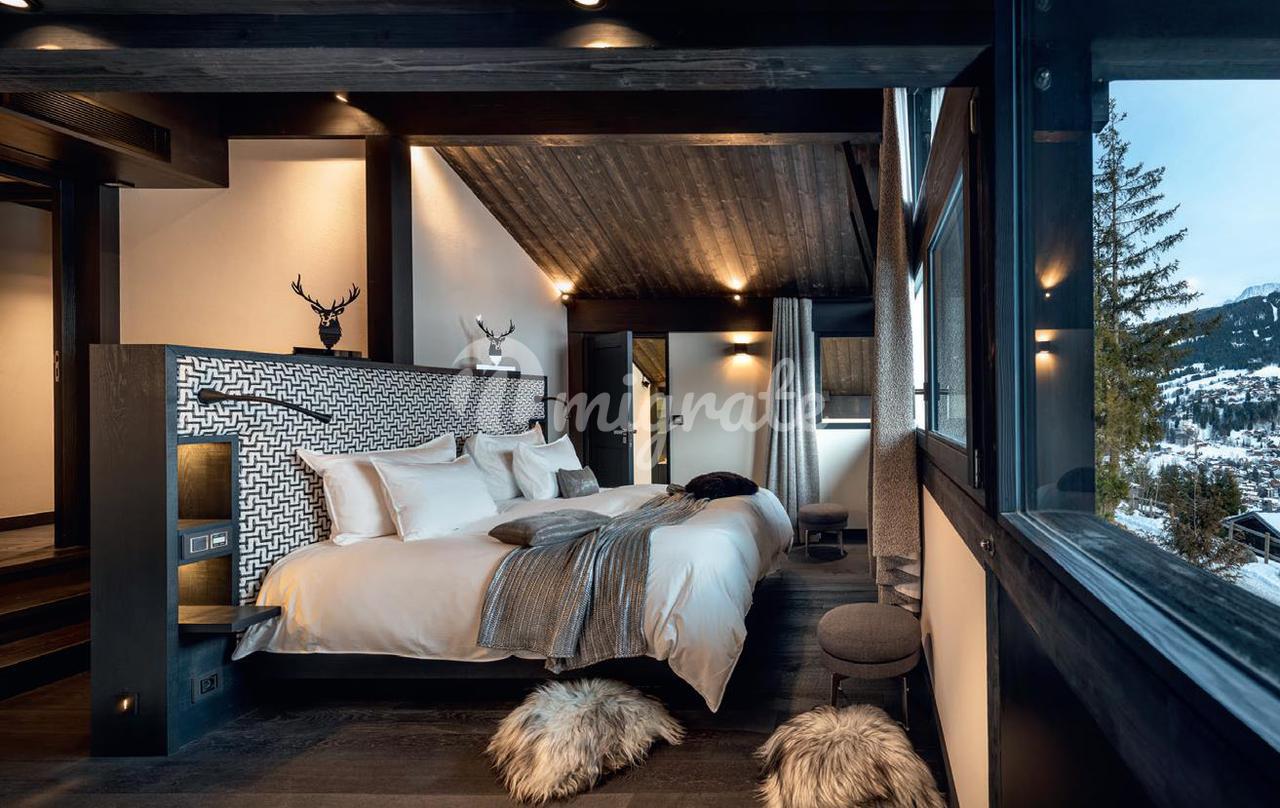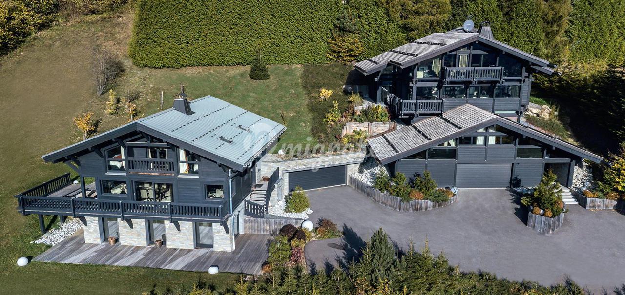 Расположенные на холмах Ле-Жайе, на очень солнечной стороне Межева, эти шале, соединенные гаражами, построены из благородных и высококачественных материалов, сочетающих в себе мягкую, светлую, теплую и современную атмосферу. Продаются полностью меблированными, декорированными и оборудованными ведущими профессионалами, они состоят из главного шале площадью 372 кв. м на 4 уровнях, обслуживаемого 1 лифтом, гостиной с камином, библиотеки, 5 спален, 4 ванных комнат, зоны отдыха / фитнеса ( хаммам, спа, сауна, спортивный зал), помещение для хранения лыж, гараж на 4 машины, терраса 80 кв.м. В гостевом шале площадью 220 кв.м. есть гостиная/бар с центральным камином, 4 спальни, 3 ванные комнаты, зона для фитнеса/релаксации, крытый бассейн с джакузи, гараж на 4 машины и терраса площадью 112 кв.м.