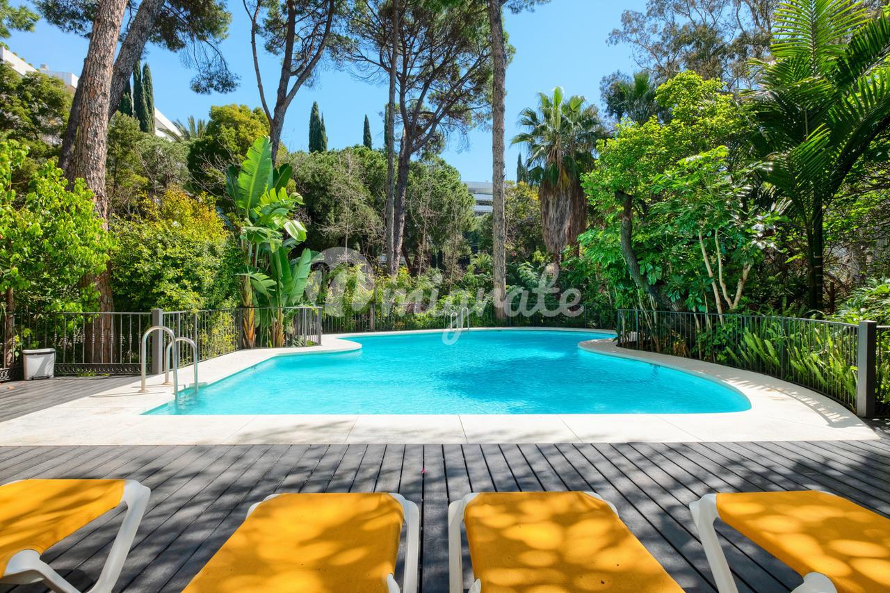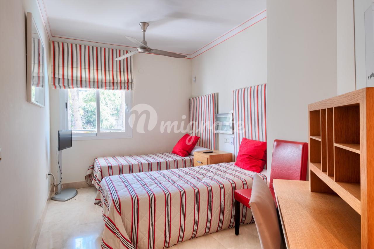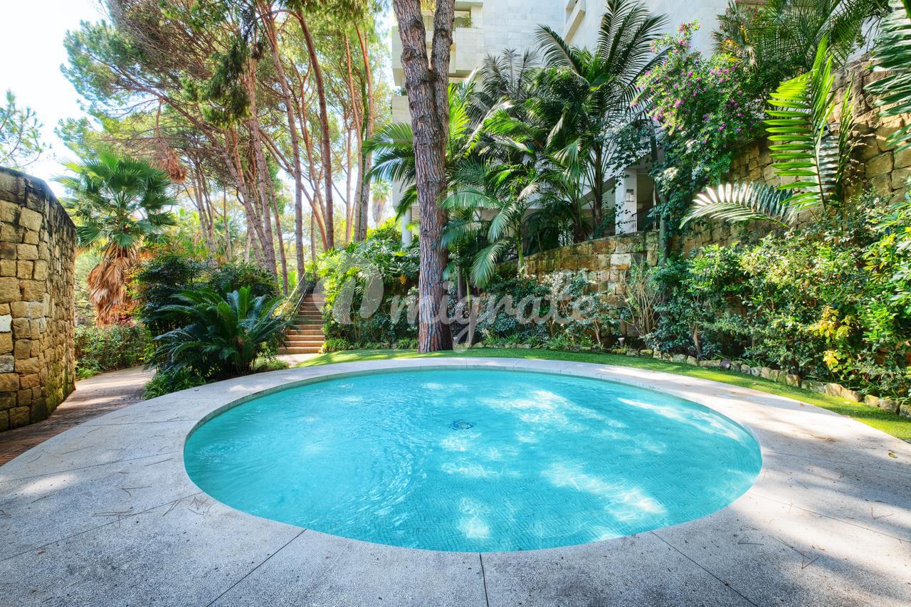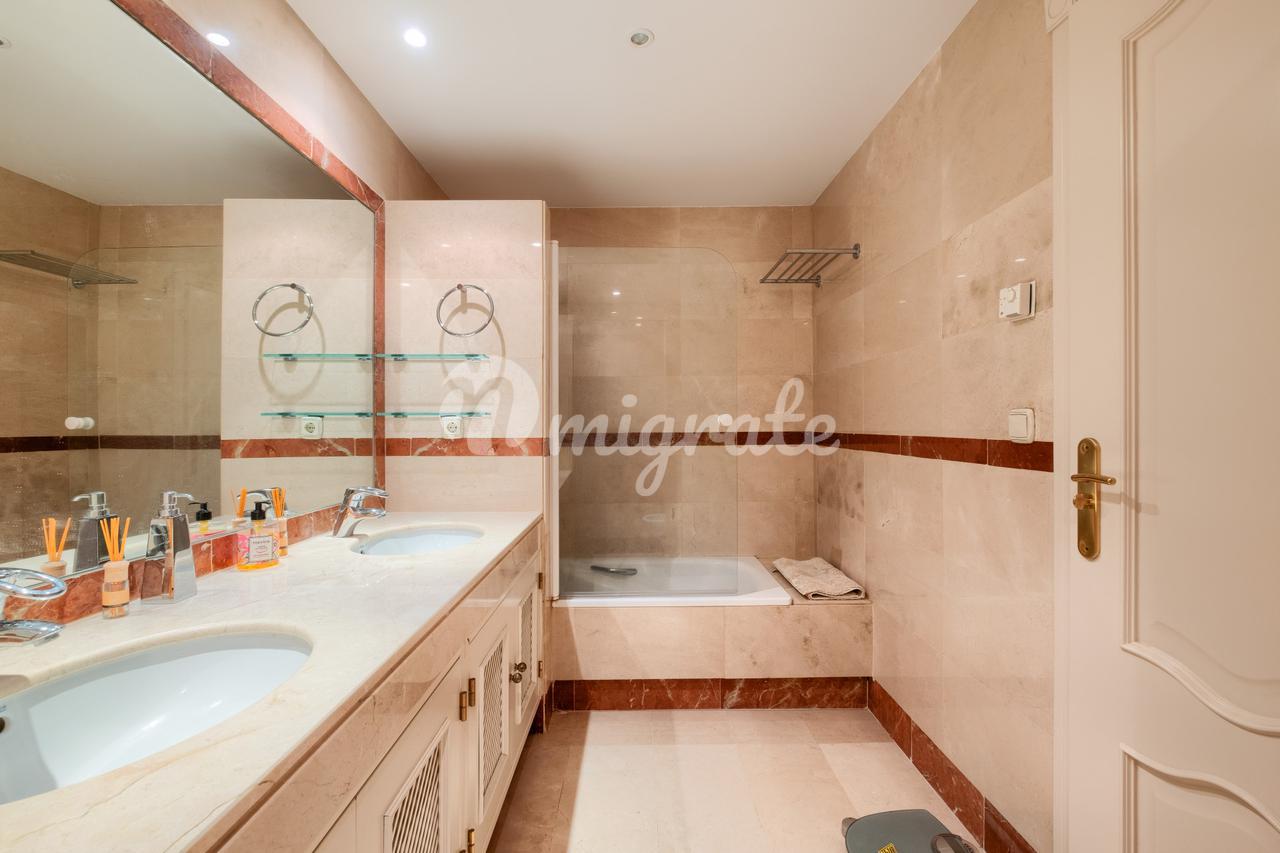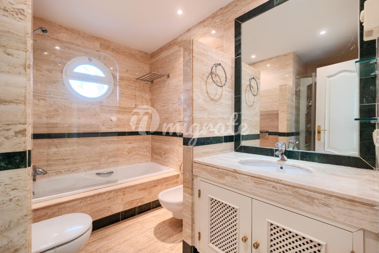 Пляжный комплекс под названием Jardines del Mediterraneo был построен в 2003 году с использованием высоких стандартов и высочайшего качества интерьеров. Он расположен всего в двух шагах от пляжа. Просторный общий холл с услугами консьержа и двумя лифтами, общий бассейн, большая гидромассажная ванна и сад с соснами добавляют ценность недвижимости. В нескольких минутах ходьбы от центра города Марбелья, магазинов, ресторанов, супермаркетов и услуг. Квартира на южной стороне имеет прихожую, гостевой туалет, гостиную/столовую с выходом на просторную застекленную террасу, общую с главной спальней. Есть еще две спальни, одна с ванной комнатой и одна с отдельной ванной комнатой. Во всех ванных комнатах есть ванна, кроме основной, в которой дополнительно есть душевая кабина. Полностью оборудованная кухня оборудована бытовой техникой Bosch и имеет прилегающую прачечную. Кроме того, квартира может похвастаться подогревом полов в ванных комнатах, кондиционером с тепловым насосом, мраморными полами, а также гаражом и кладовой.