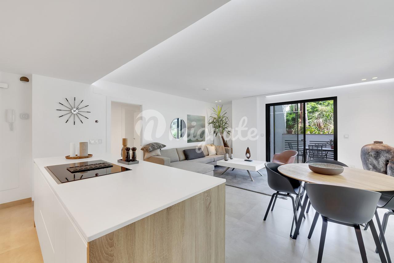 Квартира расположена в закрытом комплексе в нескольких метрах от самого Пуэрто Бануса, в 50 м от пляжа и окружена прекрасным садом с 4 бассейнами и кортом для паддл-тенниса.