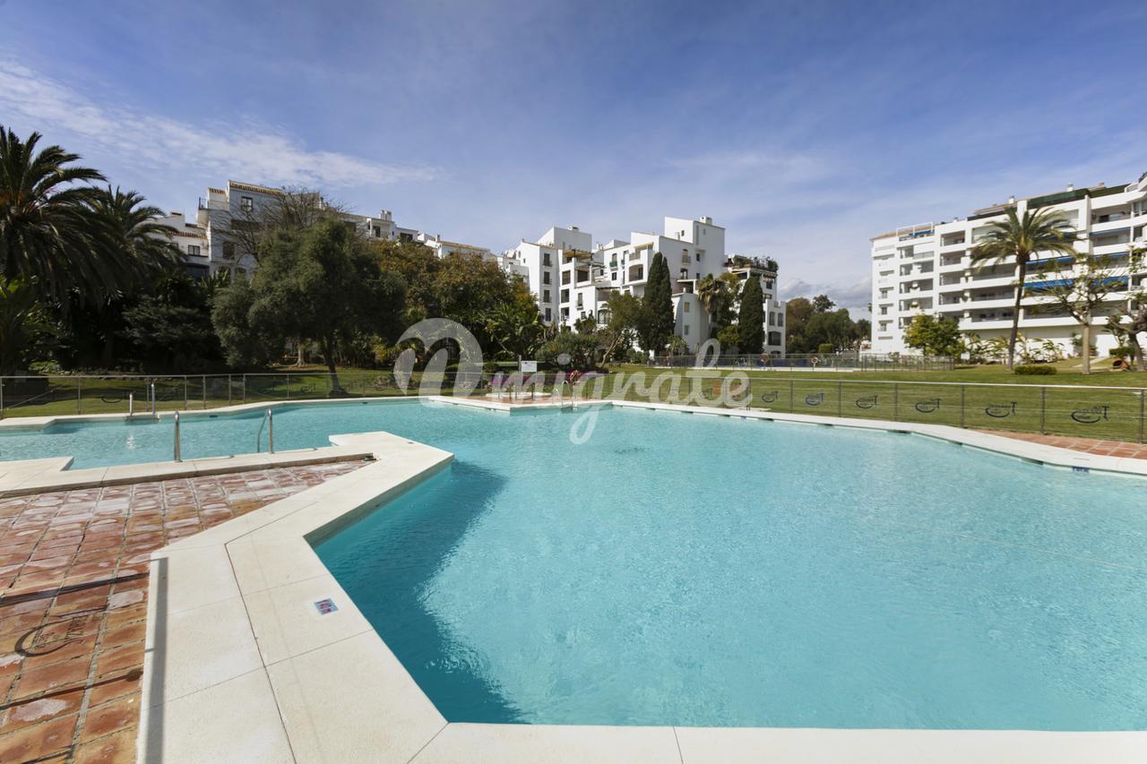 Квартира расположена в закрытом комплексе в нескольких метрах от Пуэрто Бануса, в 50 м от пляжа и окружена обширным и ухоженным садом с четырьмя бассейнами и кортом для паддл-тенниса. Отличное расположение с удобством наличия всех видов услуг, таких как рестораны, супермаркеты, магазины, банки, торговые центры и транспорт.