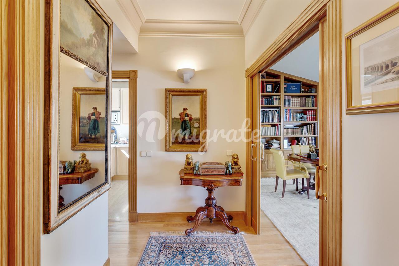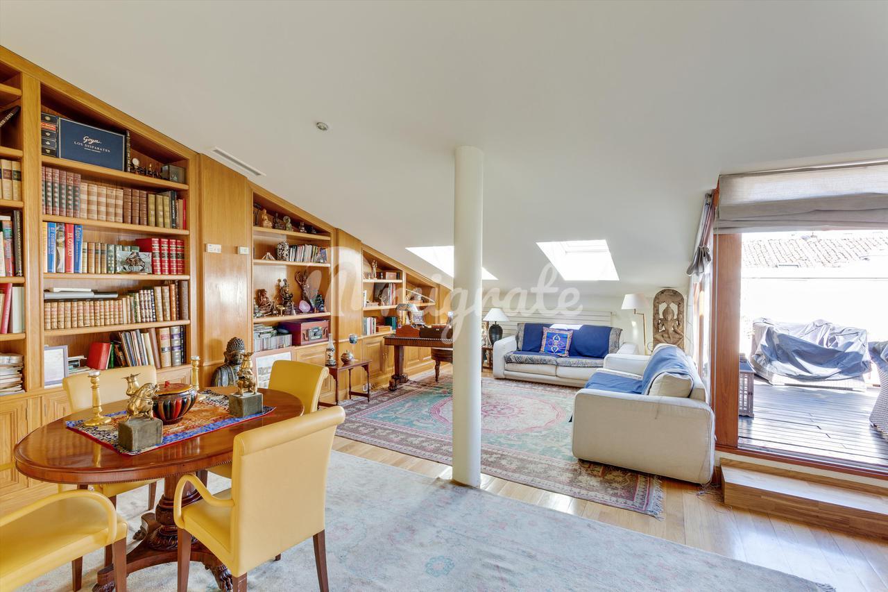 Недвижимость площадью 240 м2 расположена на шестом этаже классического здания начала 20 века в отличном состоянии. Эта квартира с видом на улицу была отремонтирована, чтобы иметь открытую планировку, где свет является ключевым элементом. Пространство было максимально увеличено, так как наклонная крыша была объединена с гостиной, что делает ее удобной для проживания. Большие окна от крыши до пола увеличивают размер комнаты и дают доступ к террасе, которая была спроектирована как удобная зона отдыха. Из главного коридора находятся спальни. Большая главная спальня имеет ванную комнату, полностью оборудованную ванную комнату и комплексные решения для хранения. Второстепенные спальни имеют общую ванную комнату, отремонтированную в естественных тонах, с отдельным душем и ванной. Недвижимость дополняется кухней, которая полностью меблирована и оборудована бытовой техникой. Окна этой светлой комнаты выходят в большой внутренний двор. Вся собственность была изолирована стальной пластиной, чтобы изолировать ее от шума и беспокойства. По всему дому установлена интегрированная звуковая система. Отопление индивидуальное, во всех комнатах установлены кондиционеры. В отеле есть швейцар.