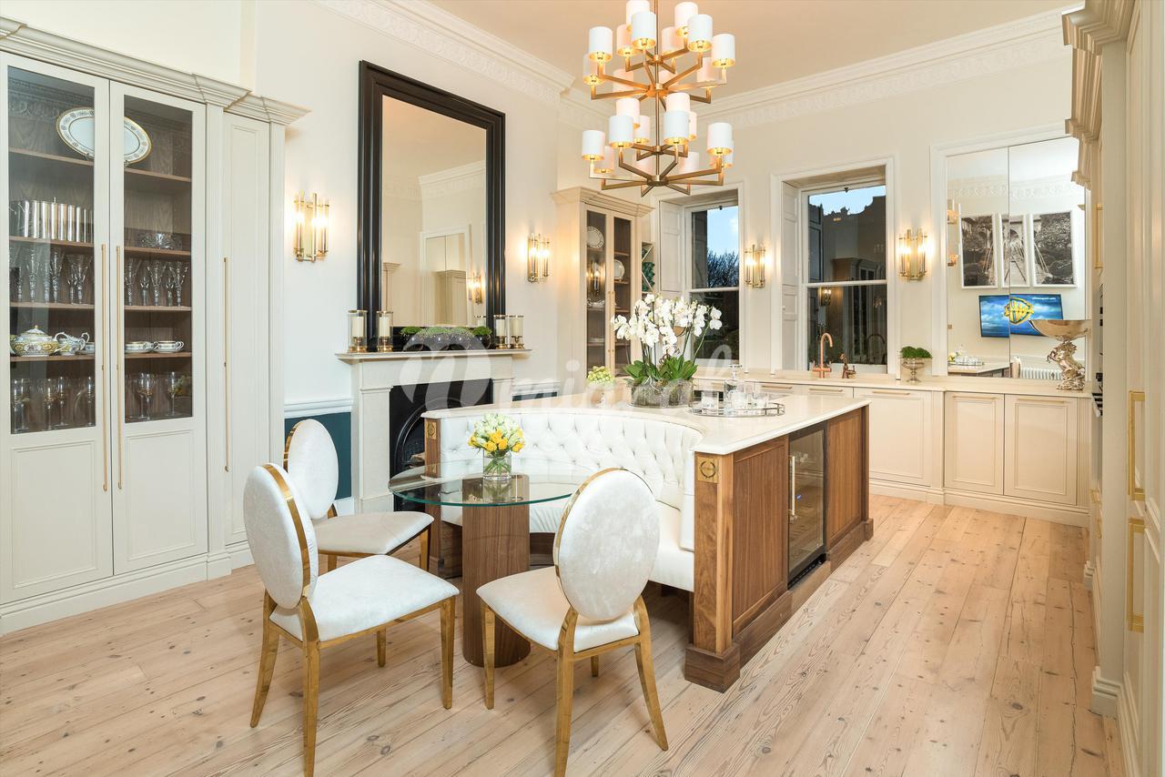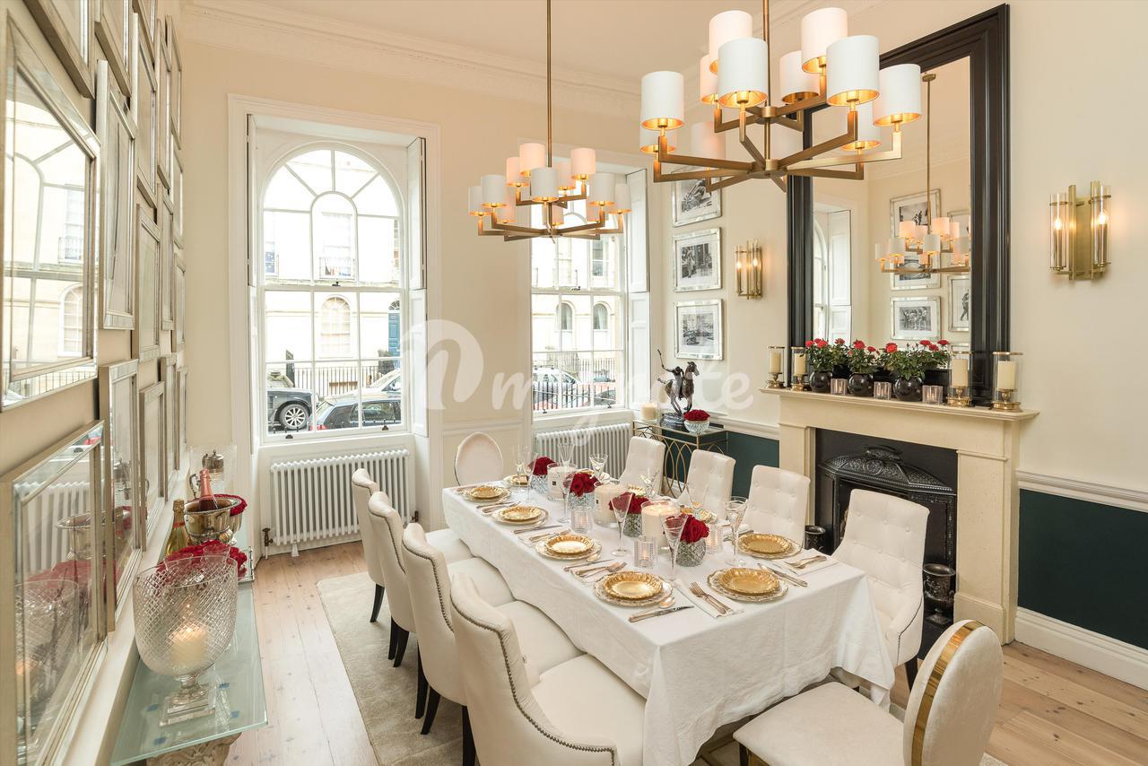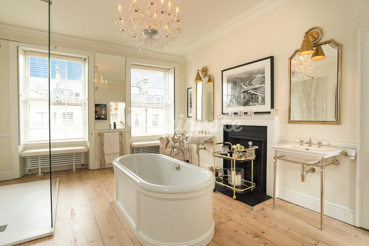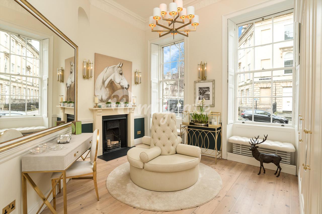 Дом Питта был построен в 1792 году по проекту Томаса Болдуина как часть поместья Палтни. В 1802 году здесь жил премьер-министр Великобритании Уильям Питт (эту деталь подтверждает бронзовая табличка на фасаде дома). Сегодня этот впечатляющий дом в георгианском стиле с двойным фасадом был капитально отремонтирован, чтобы создать роскошную семейную резиденцию с пятью спальнями на пяти этажах. Многие оригинальные элементы сохранились, в том числе великолепная консольная лестница, оконные ставни, декоративный карниз, исключительная высота потолков, высокие окна со створками и старинные камины. Повсюду оформлен в мягких, нейтральных тонах, вся сантехника и фурнитура высочайшего качества: например, двухворсовые ковры и отреставрированные деревянные полы, шкафы ручной работы из дуба во всех спальнях, сделанные на заказ сиденья у окна (изготовлены обойщиками Aston Martin). ), традиционные латунные ручки, шелковые шторы, электрические жалюзи и французские и итальянские хрустальные люстры. На первом этаже вас встречает светлая, элегантная прихожая; Лестницы и коридоры на всех этажах светлые и светлые, естественно освещенные световым люком на верхнем этаже. Справа находится кабинет (или гардеробная, если хотите) с элегантным камином и светящимися бра, вместительными встроенными шкафами для верхней одежды и окнами с видом на Лора-плейс и Грейт-Пултени-стрит. Также на этом этаже сделанная на заказ кухня, построенная Клейтоном Дэвидсоном, имеет окна, выходящие на задний двор, каменные столешницы и остров из орехового дерева с изогнутыми банкетными креслами и круглым столом для завтрака. Есть достаточно бытовой техники, в том числе 2 духовки Miele, 2 холодильника с морозильной камерой и 2 посудомоечные машины, а также встроенный холодильник для вина, микроволновая печь и кофеварка, а также кладовая, ящики для специй и витрины. Прилегающая столовая достаточно просторна для 12-местного стола. На первом этаже элегантная жилая площадь разделена на две смежные комнаты с большими пропорциями: одна в передней части дома, с высокими окнами, камином и 75-дюймовым телевизором; а другой с прекрасным видом на знаменитую плотину Бата, отель Empire и Parade Gardens. Через холл есть второй кабинет (или спальня). Наверху главная спальня занимает весь второй этаж: здесь есть спальня, роскошная ванная комната с отдельно стоящей ванной в центре, душевая кабина, две раковины и герметичные деревянные полы. Шикарная гардеробная со встроенными шкафами, полками с подсветкой, туалетным столиком и островной витриной завершает комплект.