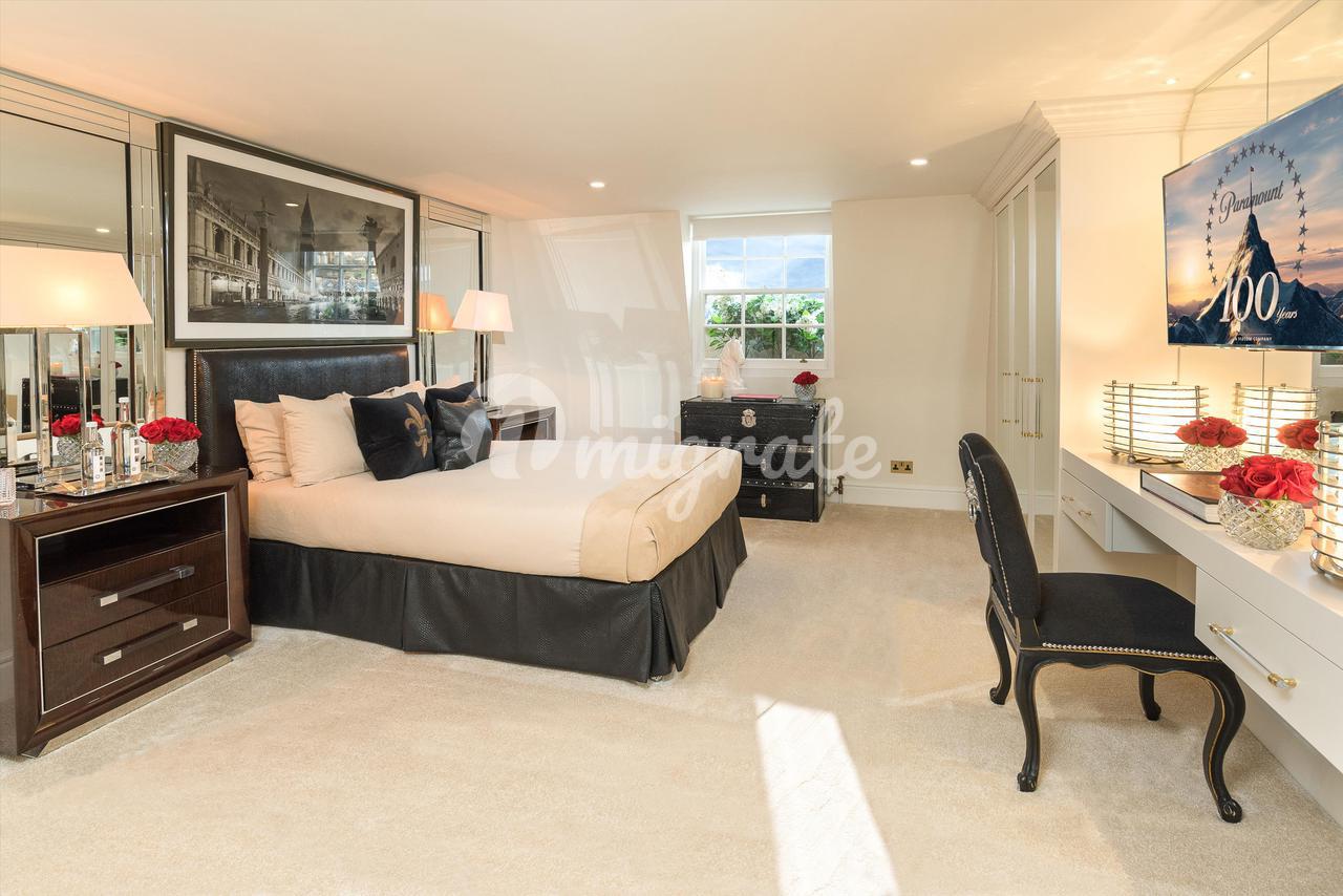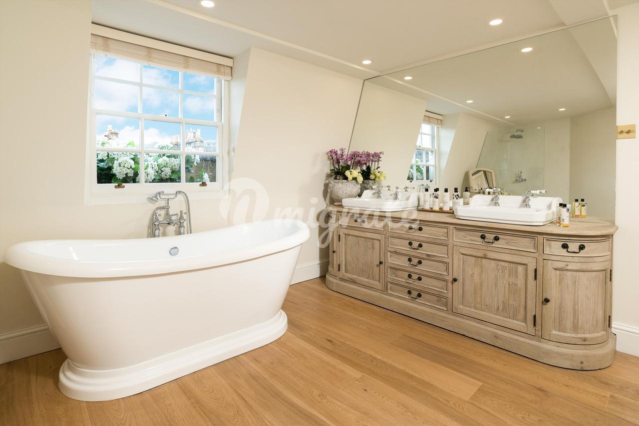 На третьем и четвертом этажах расположены еще три роскошные спальни и две ванные комнаты, а также удобно расположенное и хорошо оборудованное подсобное помещение со стиральной и сушильной машинами Miele, раковиной и встроенными шкафами.