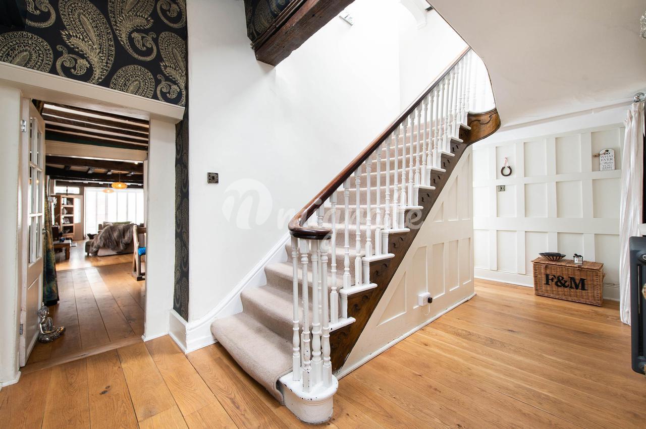 Лестница ведет на площадку второго этажа, а слева находится большая спальня с выступающими балками, старинным камином, местом для отдельного кабинета и гардеробной. Существует также еще одна спальня с отдельной гардеробной и собственной ванной комнатой, из которой открывается вид на церковь Святой Марии.