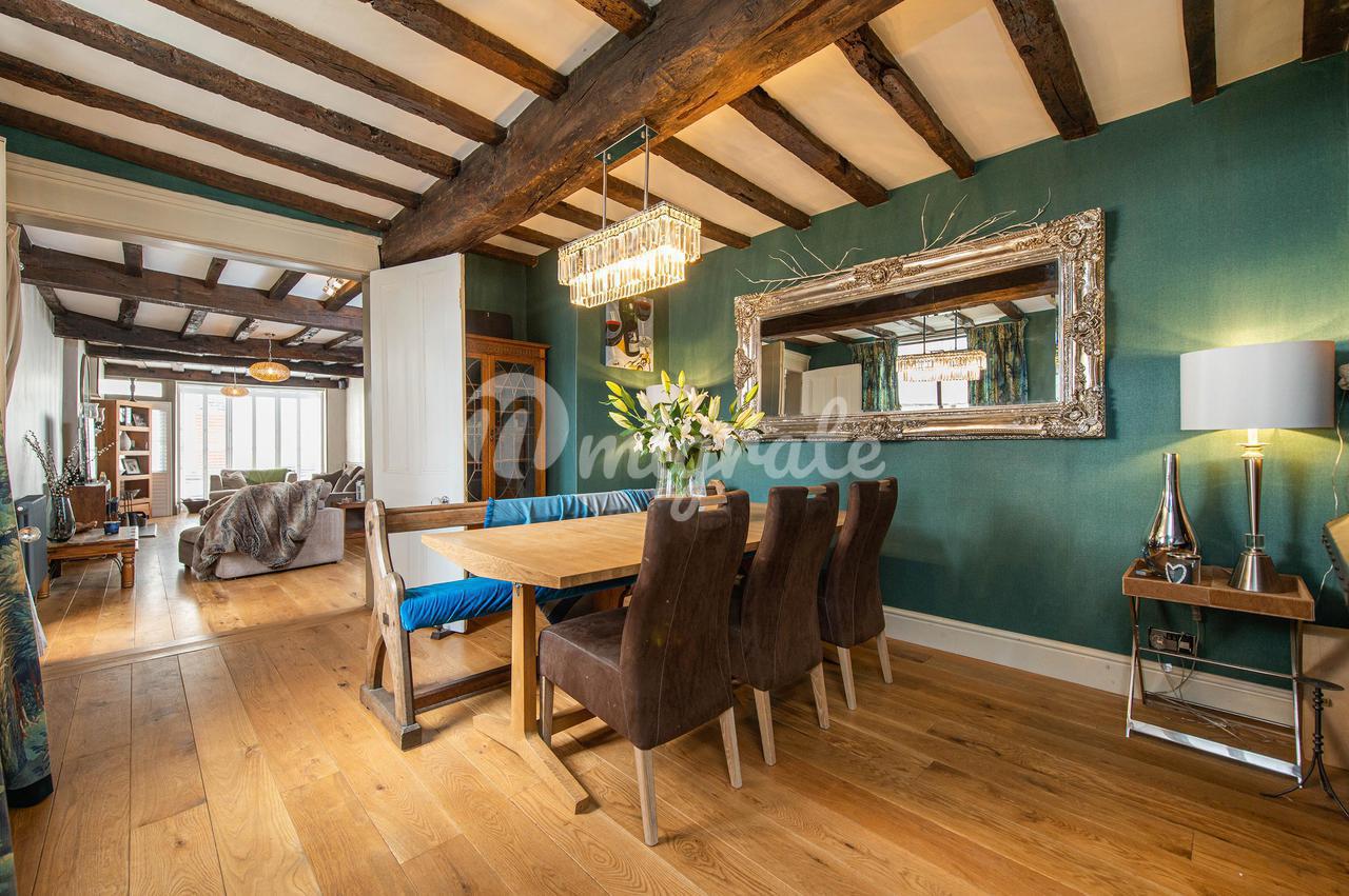27 Jury Street - это очаровательный трехэтажный дом со средними террасами, внесенный в список II класса, расположенный в очень привлекательном месте в самом сердце центра города Уорик. Этот очаровательный и обманчиво просторный отель был построен в 1788 году. С момента покупки недвижимости в 2019 году она была со вкусом переоборудована и отремонтирована из офисов и квартиры в красивый семейный дом. Из прихожей можно попасть как в гардеробную, так и в гостиную. Недавно переоборудованная гостиная украшена выступающими балками, оригинальным камином из мрамора Adam, частично обшитыми панелями стенами и большим застекленным окном со ставнями. Еще одна дверь открывается в частный внутренний двор.