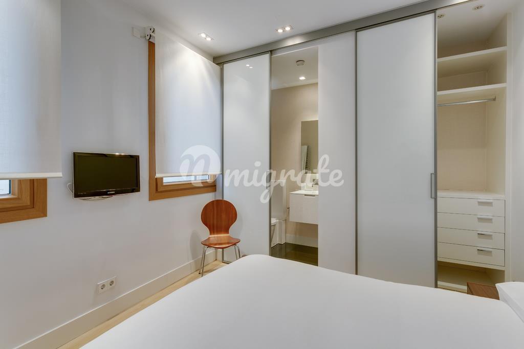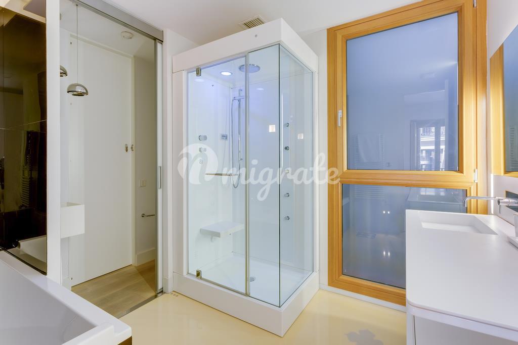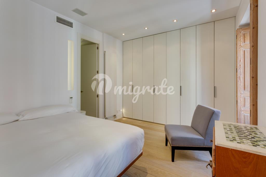 К дому ведет светлая прихожая с большими окнами, выходящими во внутренний двор. Это ведет в зону для завтрака на кухне, оборудованную электроприборами высшего класса и с видом на другой внутренний дворик. Справа от зоны для завтрака находится вторая спальня с ванной комнатой и большим количеством места для гардероба. Из кухни вы попадаете в светлую просторную гостиную/столовую с видом на улицу, имеет два балкона с прекрасным видом на окрестности, имеет туалет, который также служит ванной комнатой для главной спальни. Наличие двух дверей для обслуживания обеих комнат. Наконец, есть главная спальня с двумя балконами и шкафами от пола до потолка. Для повышенного чувства спокойствия спальня звукоизолирована. В доме есть каминное отопление и внутренний кондиционер, работающий на природном газе. Кроме того, в нем есть круглосуточная система безопасности, а также портье, который обслуживает здание. Есть деревянный пол и столярные изделия climalit.