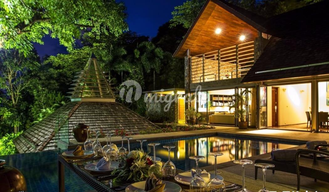 Эта вилла является шедевром современной азиатской архитектуры, которая прочно стоит на склоне холма на берегу океана с видом на залив Патонг.