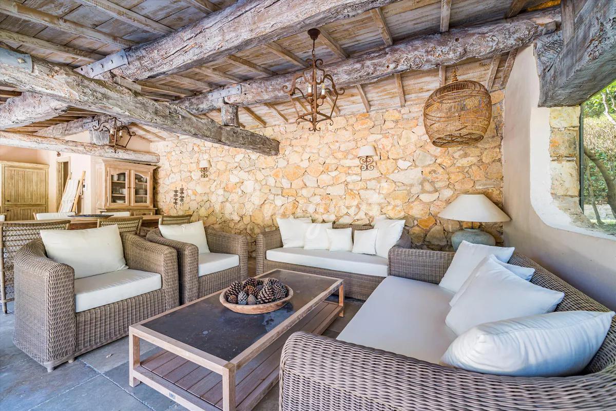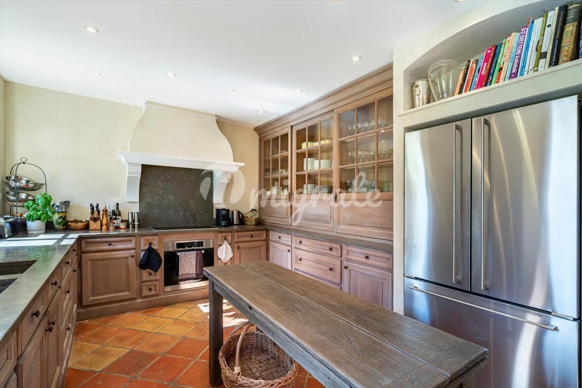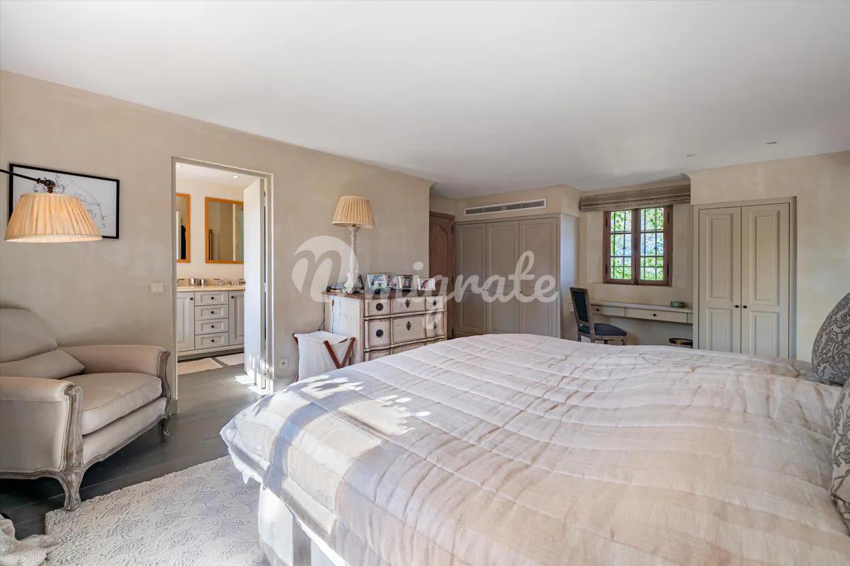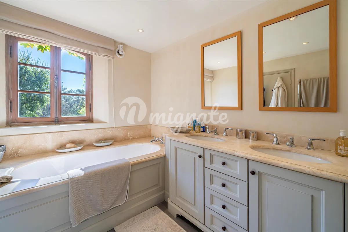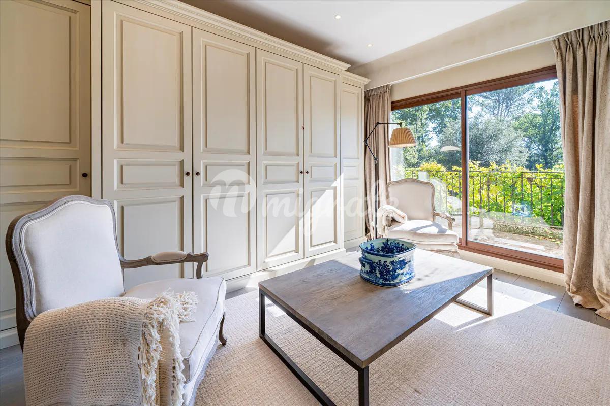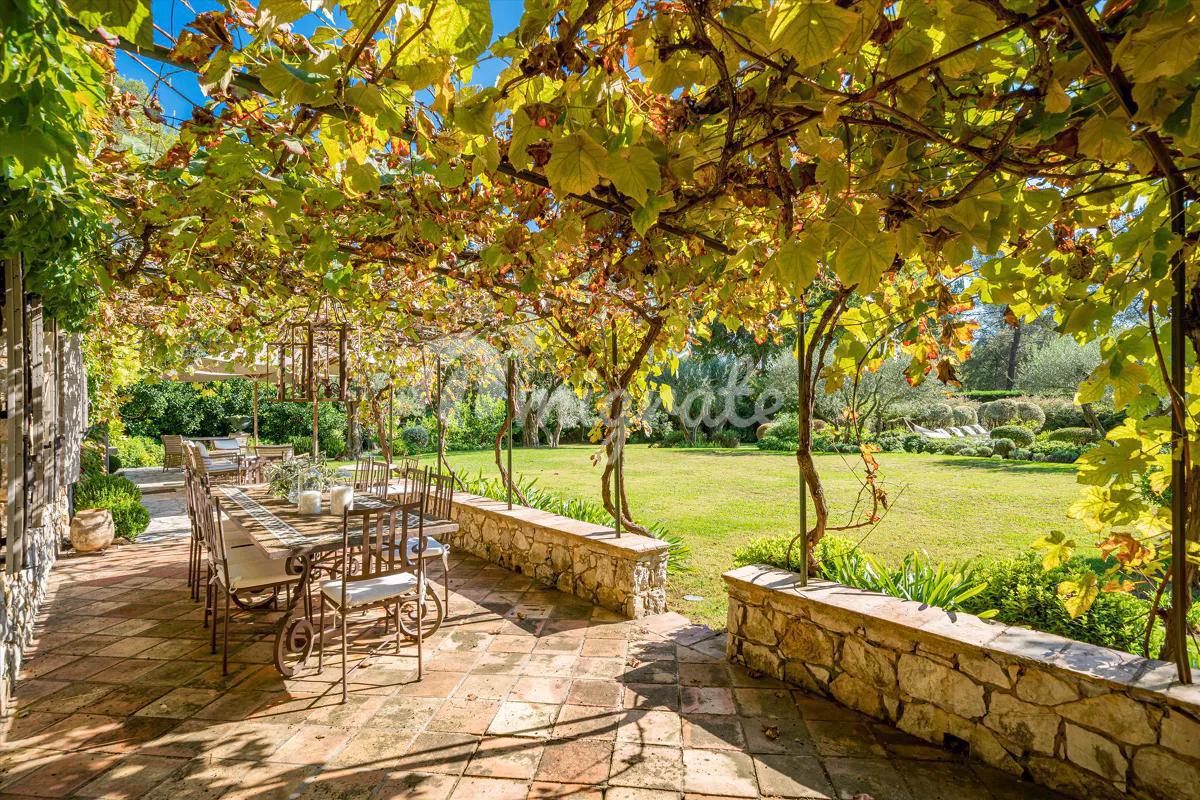 Вилла расположена на территории площадью 3470 кв. м с ландшафтными провансальскими садами с множеством оливковых и фруктовых деревьев, скульптурных кустарников. На территории есть подогреваемый бассейн и домик у бассейна с гостиной, кухней, обеденной зоной, ванной и постирочной комнатой. Для размещения автомобилей есть паркинг с навесом на 2 места, гараж на 4 места и дополнительное место на улице для 6+ автомобилей.