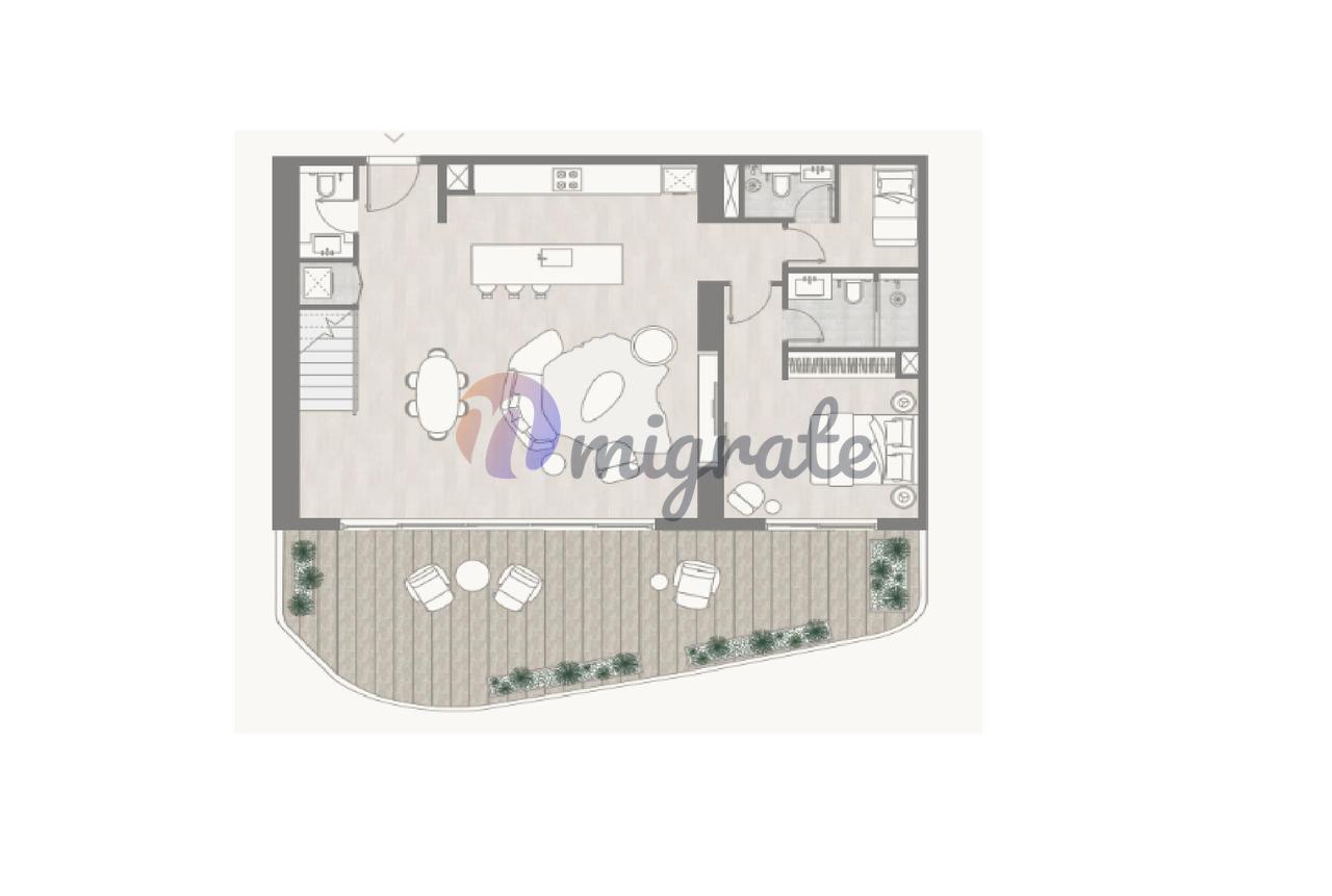 Среди ключевых особенностей апартаментов в Kempinski Residences The Creek Dubai — панорамные окна, высокие потолки, дизайнерская мебель, деревянные полы и мраморные поверхности.