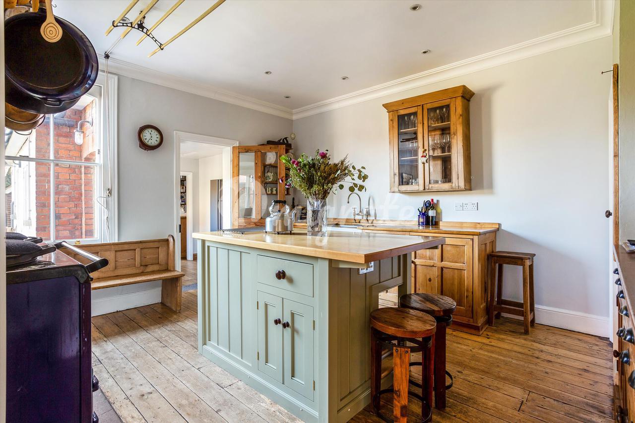 Входя в дом через крыльцо, вы попадаете в светлую прихожую с потрясающими оригинальными половицами и высокими потолками. В гостиной есть оригинальный камин и большое эркерное окно с дубовыми ставнями, выходящее на запад и обеспечивающее обилие света. К столовой примыкает фермерская кухня с Aga и мебелью из массива дерева, в которой есть дровяная печь и французские двери в сад. Эта очаровательная кухня-столовая, оформленная в восхитительном загородном стиле, оказалась исключительно практичной для семейного проживания благодаря деревянным полам и большому смежному подсобному помещению, кладовой и гардеробной на первом этаже. Из подсобного помещения и обеденной зоны, ведущих прямо в сад, можно выйти на задний дворик, клумбу на возвышении и лужайку за его пределами. Сад выходит на юго-восток и надежно огорожен, включая сарай для хранения вещей.