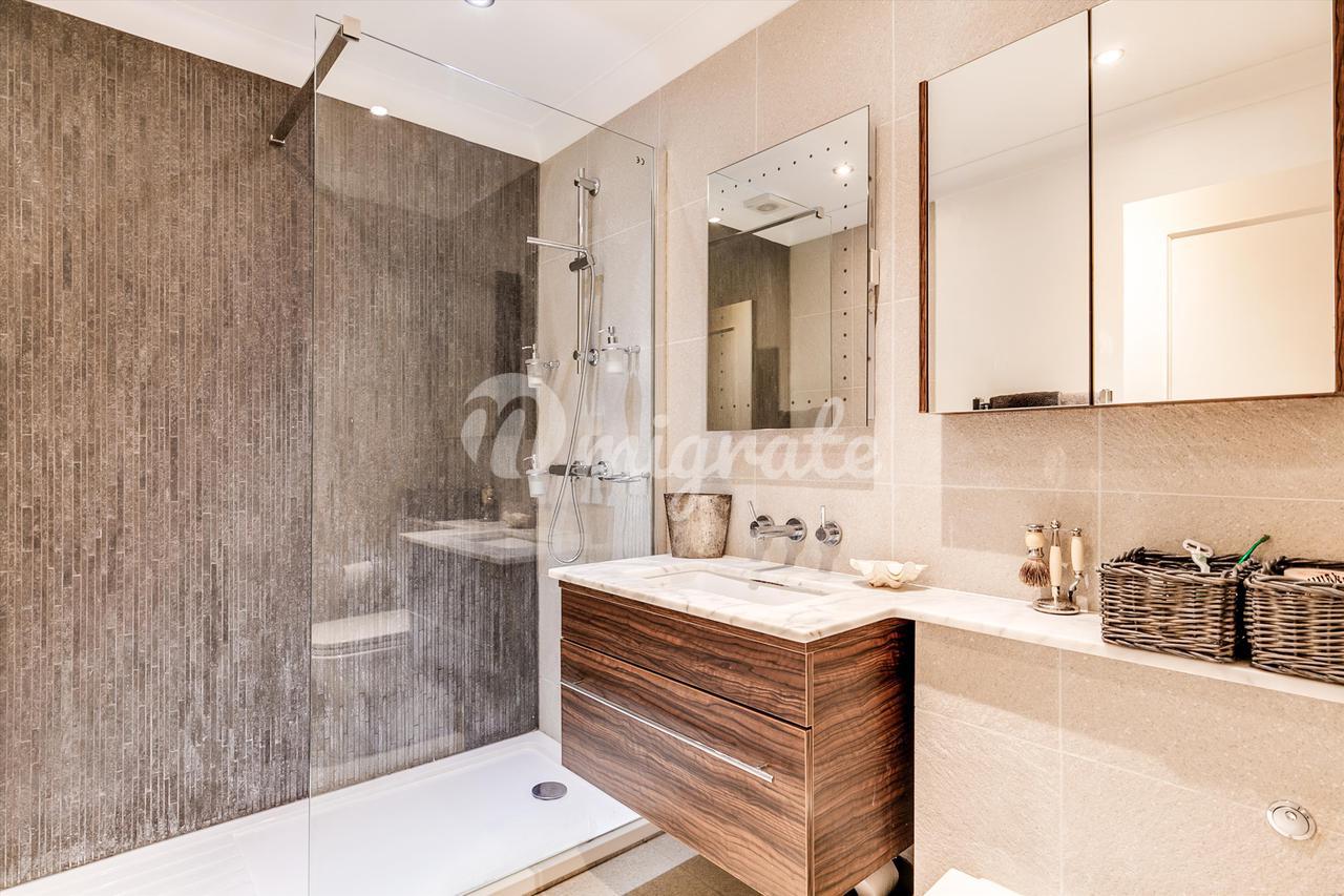 На первом этаже находится прихожая, полностью оборудованная кухня и очаровательная приемная/столовая с двустворчатыми дверями, выходящими в восхитительный террасный сад на южной стороне. Гардероб завершает этот этаж. На первом этаже находится спальня с двуспальной кроватью со встроенными шкафами и ванной комнатой с душем, а также еще одна приемная с двумя комплектами двойных дверей, которые обеспечивают доступ к балкону с великолепным видом на Ричмонд-парк.
