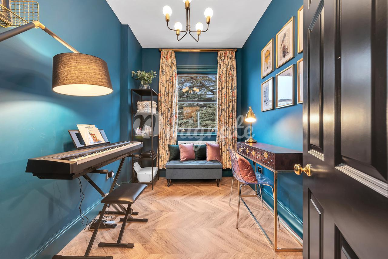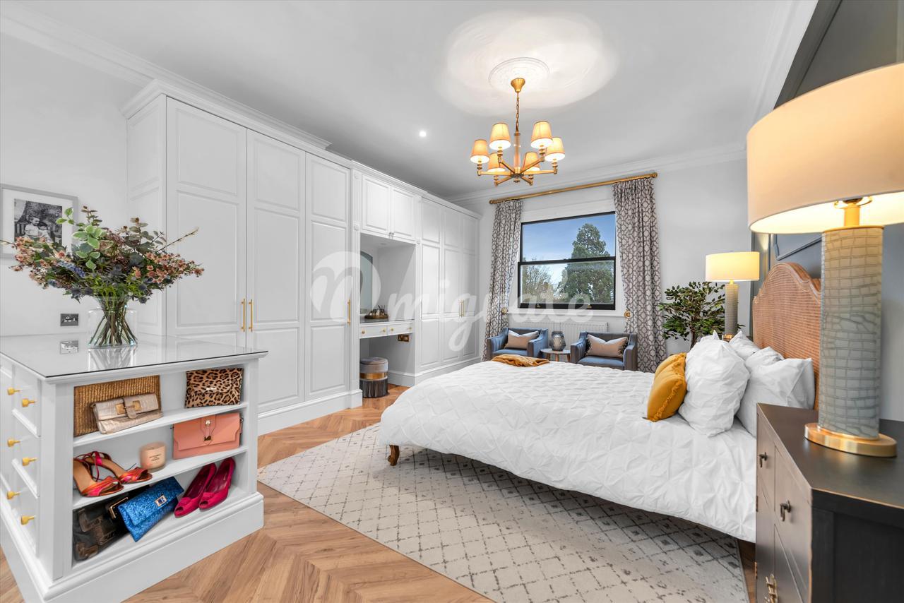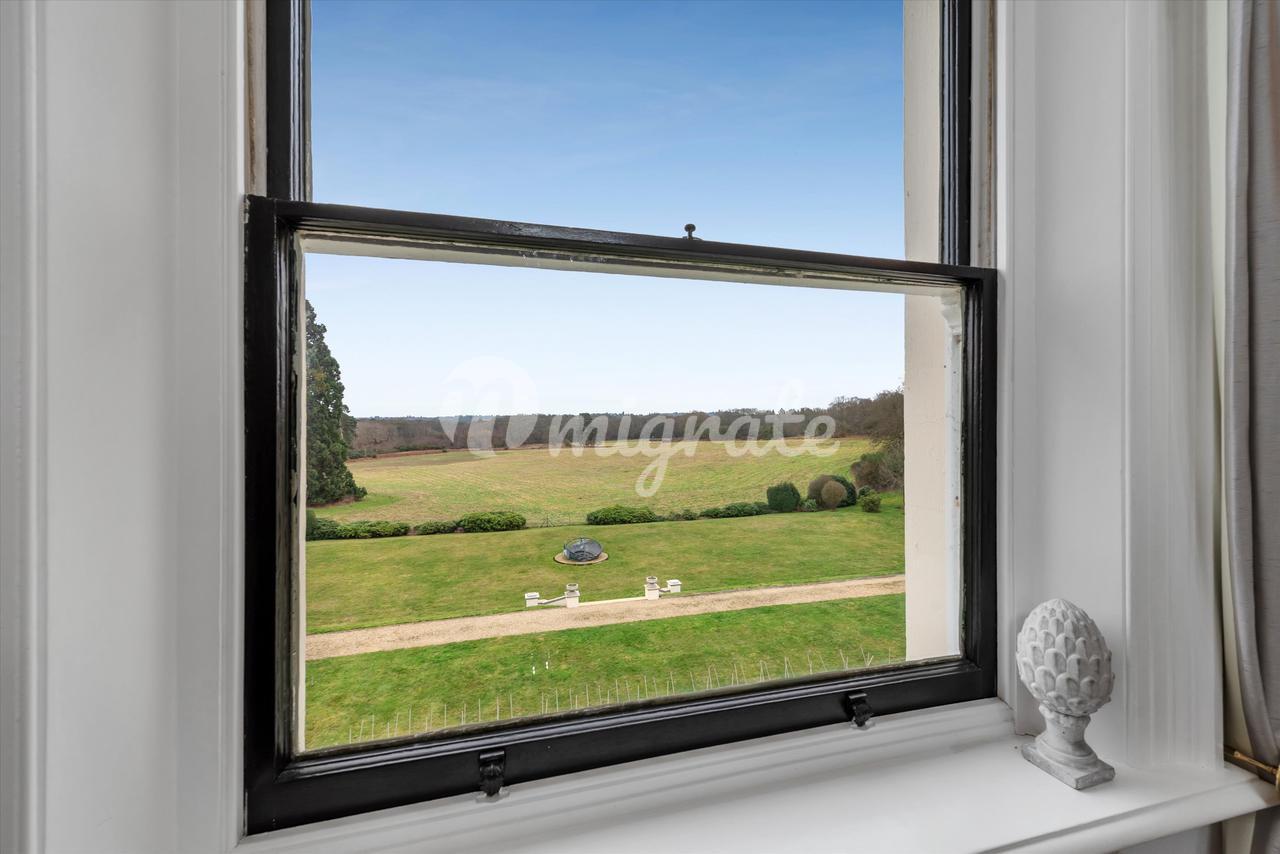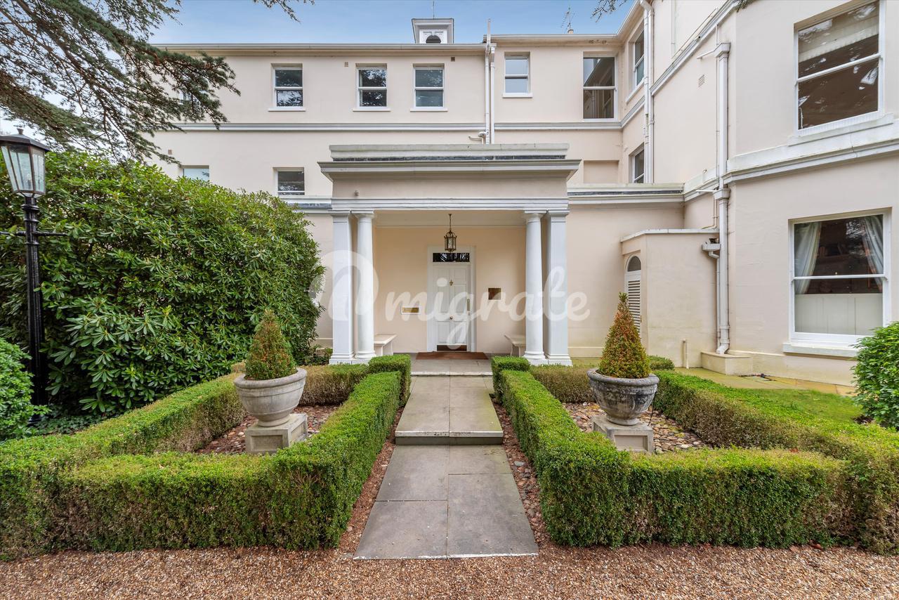 Квартира расположена на верхнем этаже этого внушительного здания с обширной общественной территорией и далеко идущими видами за пределы соседней пастбищной земли. Kings Ride House был построен в 18 веке для короля Георга III как охотничий домик. К зданию можно подъехать через кованые железные ворота со стороны Принс-Альберт-Драйв, с широкой гравийной дорогой с большим количеством парковочных мест для жителей и гостей. Здание расположено в тихом месте, в окружении вековых деревьев и зелени.