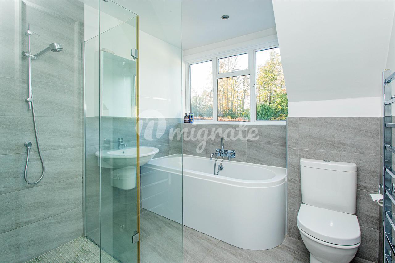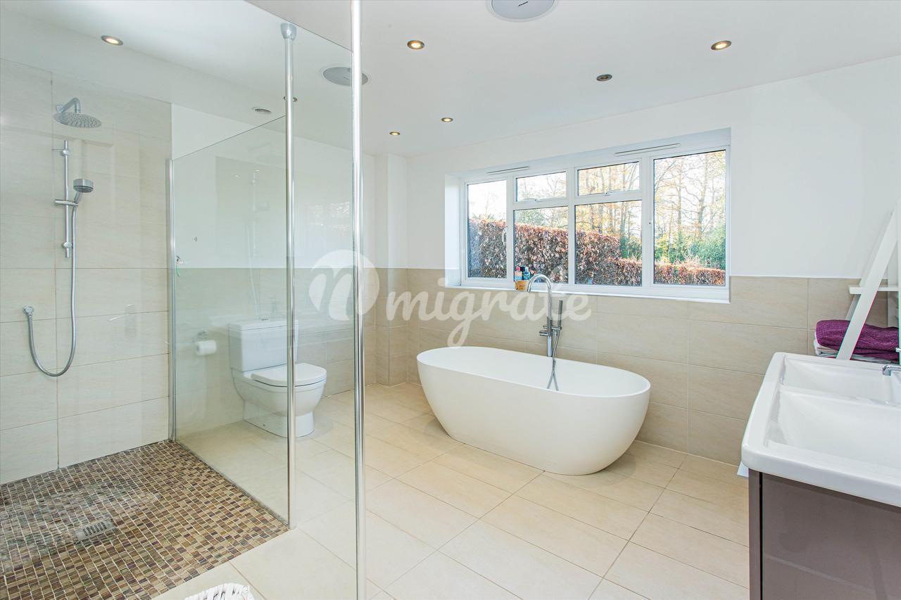 Внешне дом расположен в стороне от дороги за живой изгородью из зрелого бука. Двойные электрические ворота ведут на гравийную подъездную дорожку с парковкой на несколько автомобилей. Существует также отдельный гараж на две машины. В задней части дома есть сад, выходящий на юго-запад, который в основном разбит на газон и предлагает отличное уединение. Существует также обширная каменная терраса на возвышении, которая простирается по всей ширине дома и обеспечивает идеальное место для развлечений на свежем воздухе.