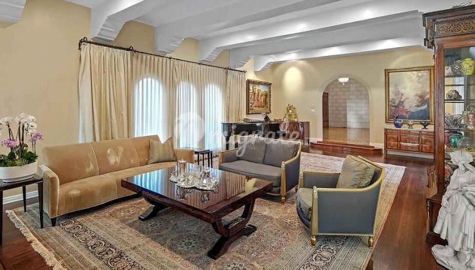 Испанский колониальный дом, когда-то бывший домом Багси Сигела. Превосходное расположение в западной части района BH Flats на участке в пол-акра. Большой официальный двухэтажный вход, украшенный расписной плиткой ручной работы, многочисленными арками и ротондой с длинными вертикальными витражами, установленными над изогнутой лестницей. Высокие потолки и обилие естественного света во всем доме. Ступенчатая гостиная с деревянными полами, балочными потолками и камином, примыкающая к семейной комнате с баром и дополнительной напольной плиткой ручной росписи.