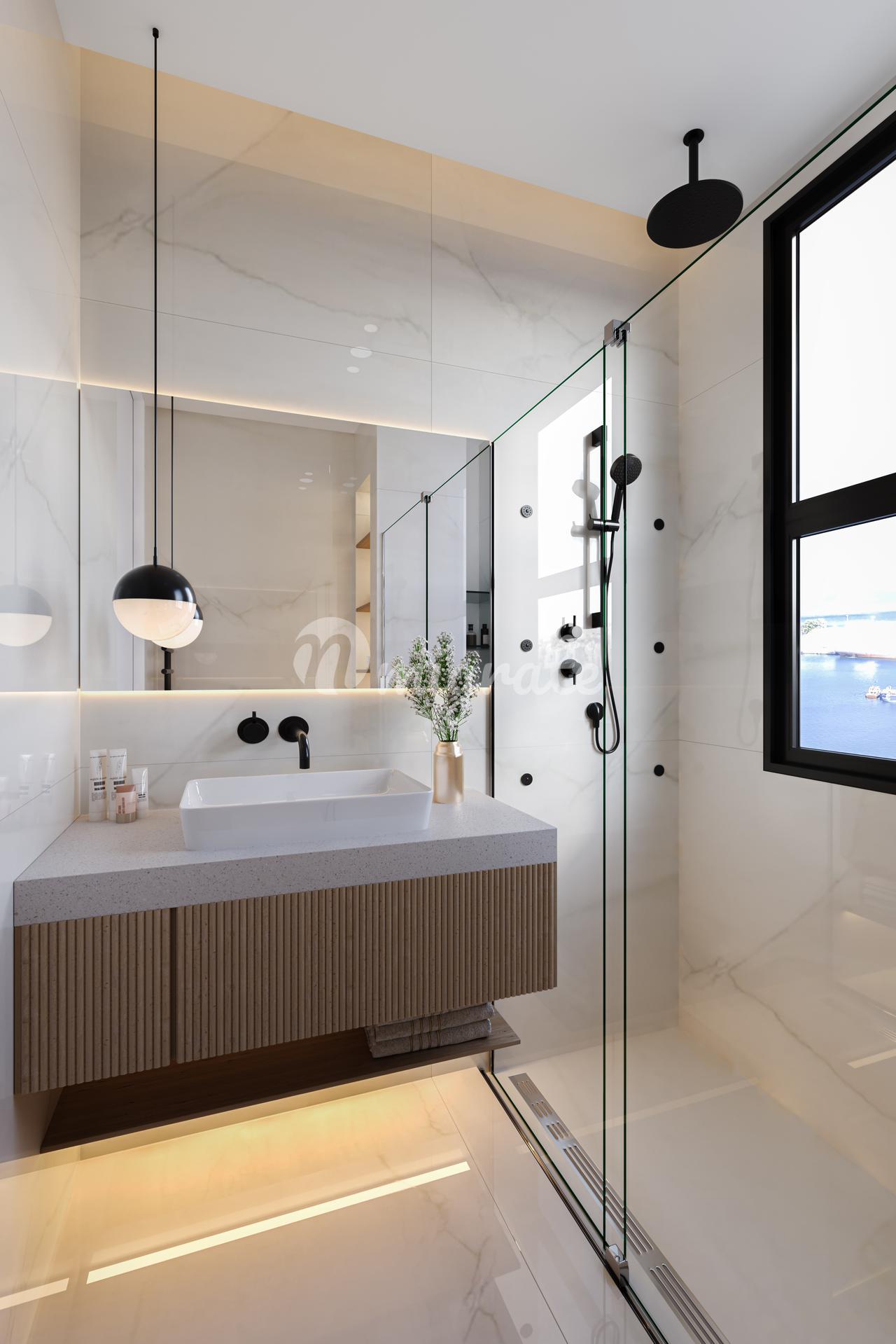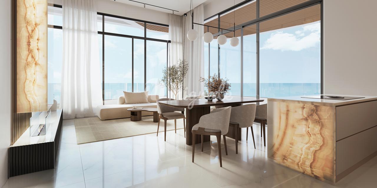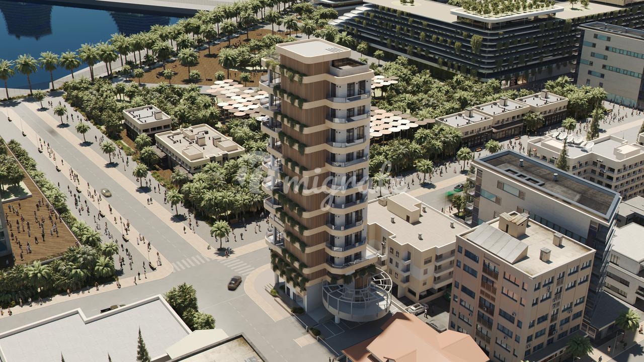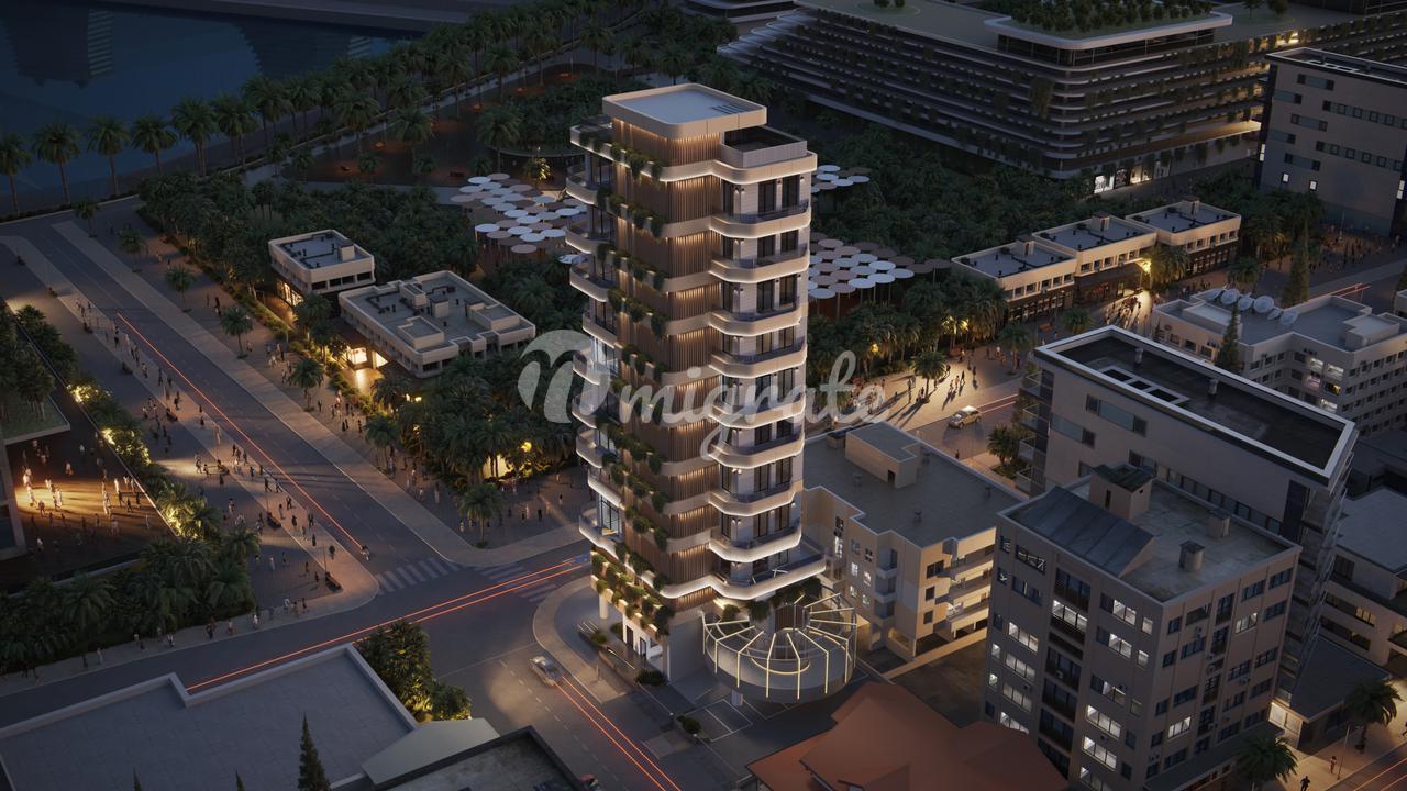 9 одноэтажных апартаментов с частным пейзажным бассейном на каждом этаже, услугами консьержа на первом этаже и безопасным доступом в здание, крытой парковкой на первом и 1-м этажах, полностью оборудованным тренажерным залом на втором этаже, беспрепятственным видом на Средиземное море.
