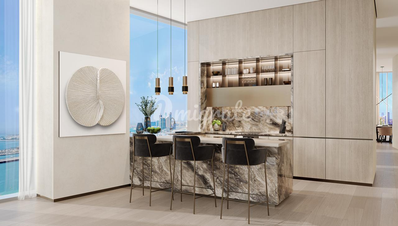 Апартаменты имеют высоту потолков не менее 3 метров – с панорамными окнами, обеспечивающими естественное солнечное освещение и впечатляющие виды. Целый этаж, посвященный роскошным удобствам, позволяет жить в комфорте курортного стиля в самом сердце Дубай Марины. Захватывающий вид на Дубай Марину, Пальм Джумейру и Арабское Море. Полностью оборудованные европейские кухни премиум-класса с последними инновациями. Жильцы могут пользоваться стойкой регистрации, услугами консьержа и круглосуточными услугами парковщика.