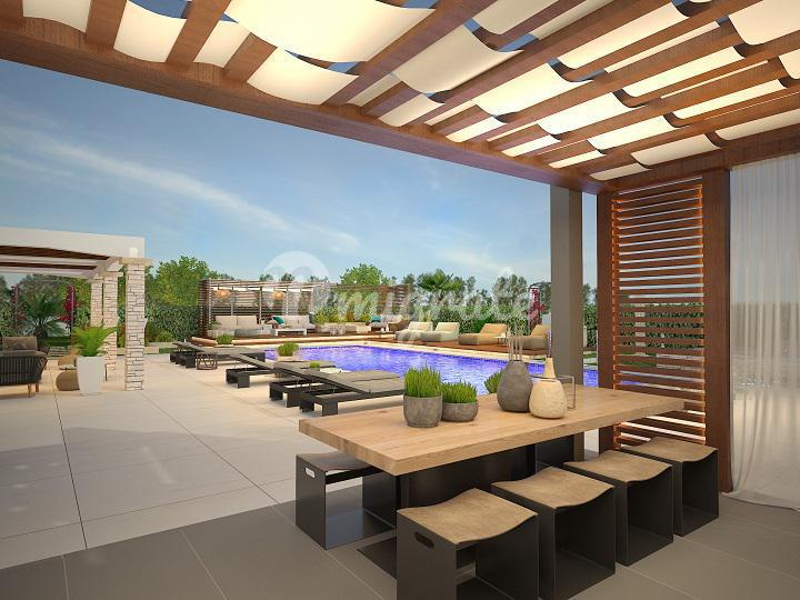 Просторные апартаменты с 2-3 спальнями расположены в двухэтажных корпусах – по четыре в каждом здании. Площадь апартаментов – от 140 кв. м, площадь пентхаусов – 260 кв. м. Практически из всех апартаментов открывается превосходный вид на море или гольф-поле. Гости апартаментов смогут пользоваться всей инфраструктурой проекта, а также двумя общими бассейнами, предназначенными исключительно для владельцев недвижимости в данном комплексе и их гостей.