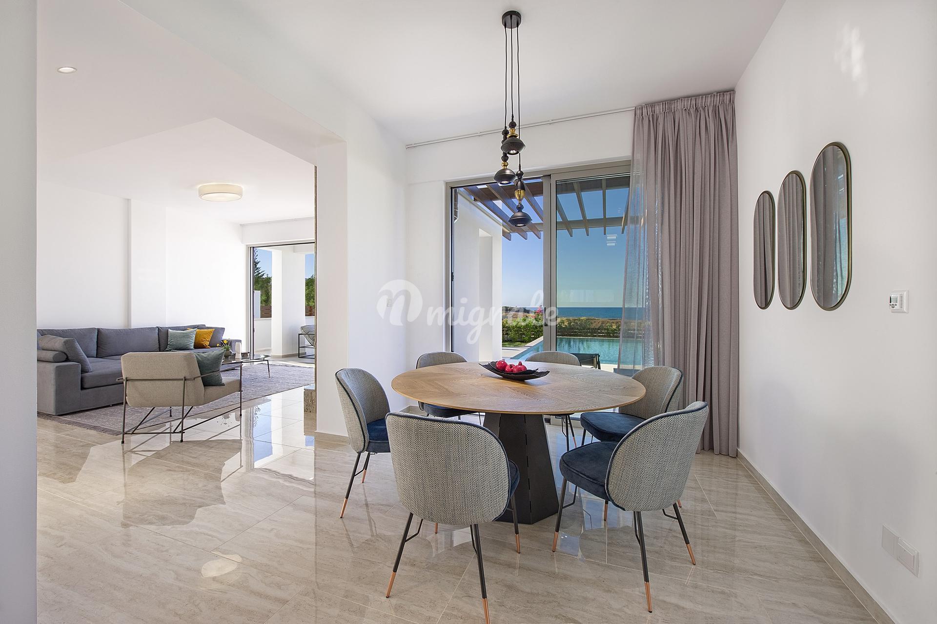 Роскошные виллы расположены на полуострове Акамас, на первой береговой линии, рядом с национальным парком, охраняемым ЮНЕСКО. Элитный комплекс – олицетворение гармонии, внутреннее и внешнее пространство образуют единство путем гармоничного взаимодействия архитектуры, ландшафта, света и пространства. Виллы класса люкс стоят на участках площадью от 440 до 1 210 кв. м, имеют по три-четыре спальные комнаты и панорамные окна. Дома предоставляются с высококачественной отделкой и эффектными дизайнерскими решениями интерьера. Каждая вилла имеет собственный бассейн. Для удобства жильцов функционируют внутренние лифты, система климат-контроль, система «умный дом».Жителям комплекса предоставляется качественный сервис: консьерж-сервис, поддержание качества и уход за инфраструктурой, охрана территории 24/7, спутниковая система, Wifi и многое другое для комфортного и высокого уровня жизни.