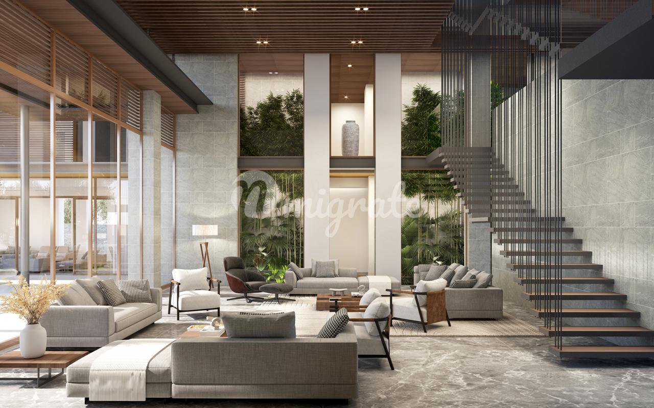 Помимо обширных озелененных территорий, проект включает бассейны, пляжи, спортивные площадки, теннисные корты, детские площадки. На территории комплекса также расположен клубный дом, магазины, рестораны и кафе. Жители комплекса будут иметь возможность быстро и удобно добираться до основных достопримечательностей Абу-Даби, частных школ, университетов, торговых центров и больниц. Готовность: II кв. 2025 г.
